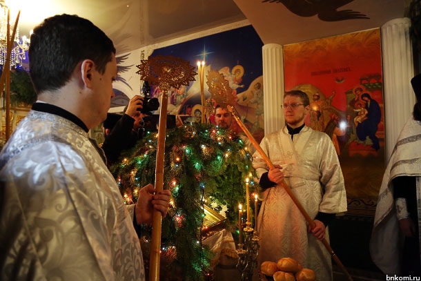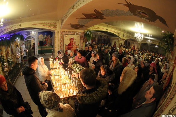 Сегодня ночью в православных храмах Сыктывкара прошли праздничные литургии, посвященные Рождеству Христову.