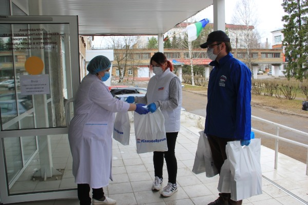 Добровольцы доставляют продуктовые наборы нуждающимся в этом людям, средства индивидуальной защиты и аппараты ИВЛ в больницы. В рамках акции "Спасибо Врачам" в больницы по всей стране передали 200 автомобилей. Совместно с торговой сетью "Магнит" "Единая Россия" доставила 360 тысяч чайных наборов медработникам, которые работают в "красной зоне". Партия передала в регионы несколько миллионов масок. Часть средств индивидуальной защиты предоставил крупный онлайн-ритейлер Wildberries.
