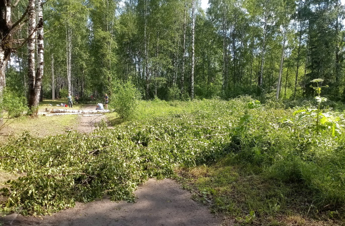 В рамках подготовки территории строительства проводится вырубка деревьев, подпадающих под пятно застройки. Вырубка осуществляется в соответствии с проектной документацией и разрешительными документами.