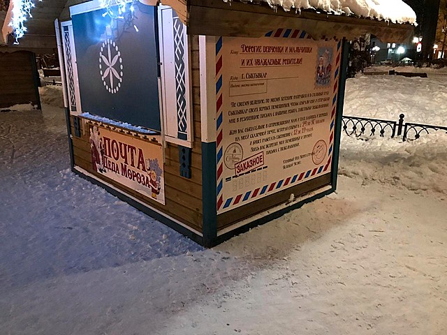 По инициативе администрации Сыктывкара в этом году на Стефановской площади появится специальный домик, где разместится "Почта Деда Мороза", а его верные помощники с 24 по 30 декабря включительно с 12 до 19 часов ежедневно будут собирать письма от детишек с их заветными пожеланиями и отправлять их в резиденцию Деда Мороза в Великий Устюг.
