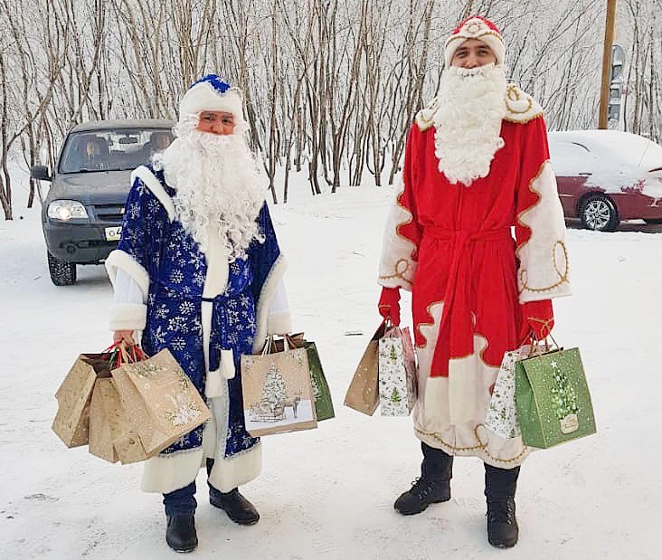 В начале января местные волонтеры движения, переодевшись в костюмы Деда Мороза, развезли 99 подарочных наборов по адресам в городе и поселках детям от 3 до 12 лет, родители которых работали в новогоднюю ночь в больнице скорой медицинской помощи и инфекционной больнице, а также стационарном отделении Территориального центра социального обслуживания населения.
