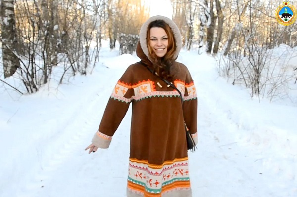 Национальная одежда выполнена из оленьего меха, украшена орнаментом, выполненным техникой аппликации из полосок ткани, сукна и меховой мозаики.