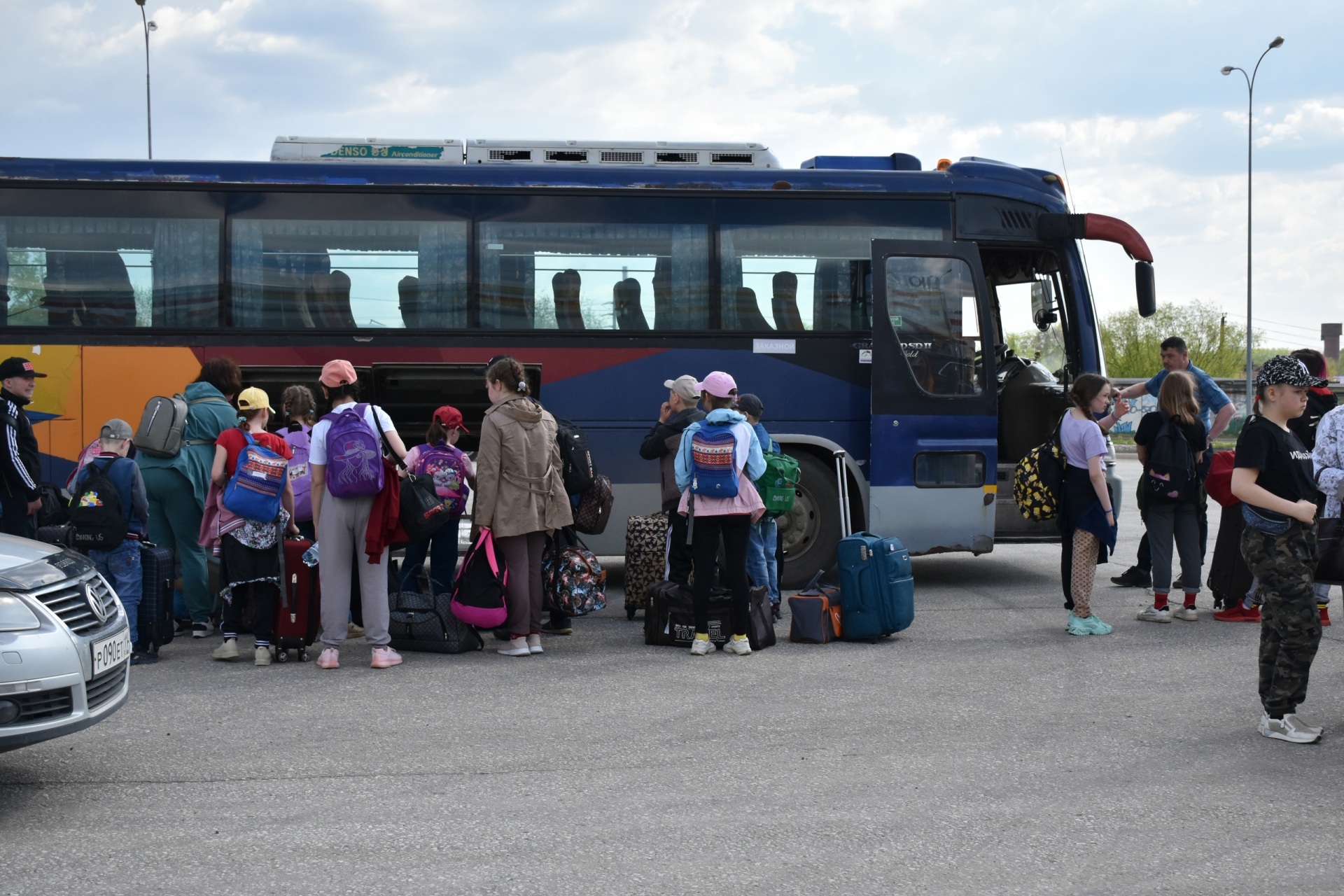 В первом специальном железнодорожном составе вместе с детьми 67 сопровождающих детских групп. Вагоны оборудованы биотуалетами и кондиционерами.