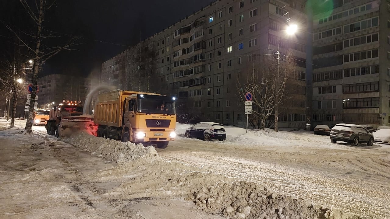 5000 кубометров снега вывезено из Сыктывкара за минувшие сутки, сообщает МКП "Дорожное хозяйство".