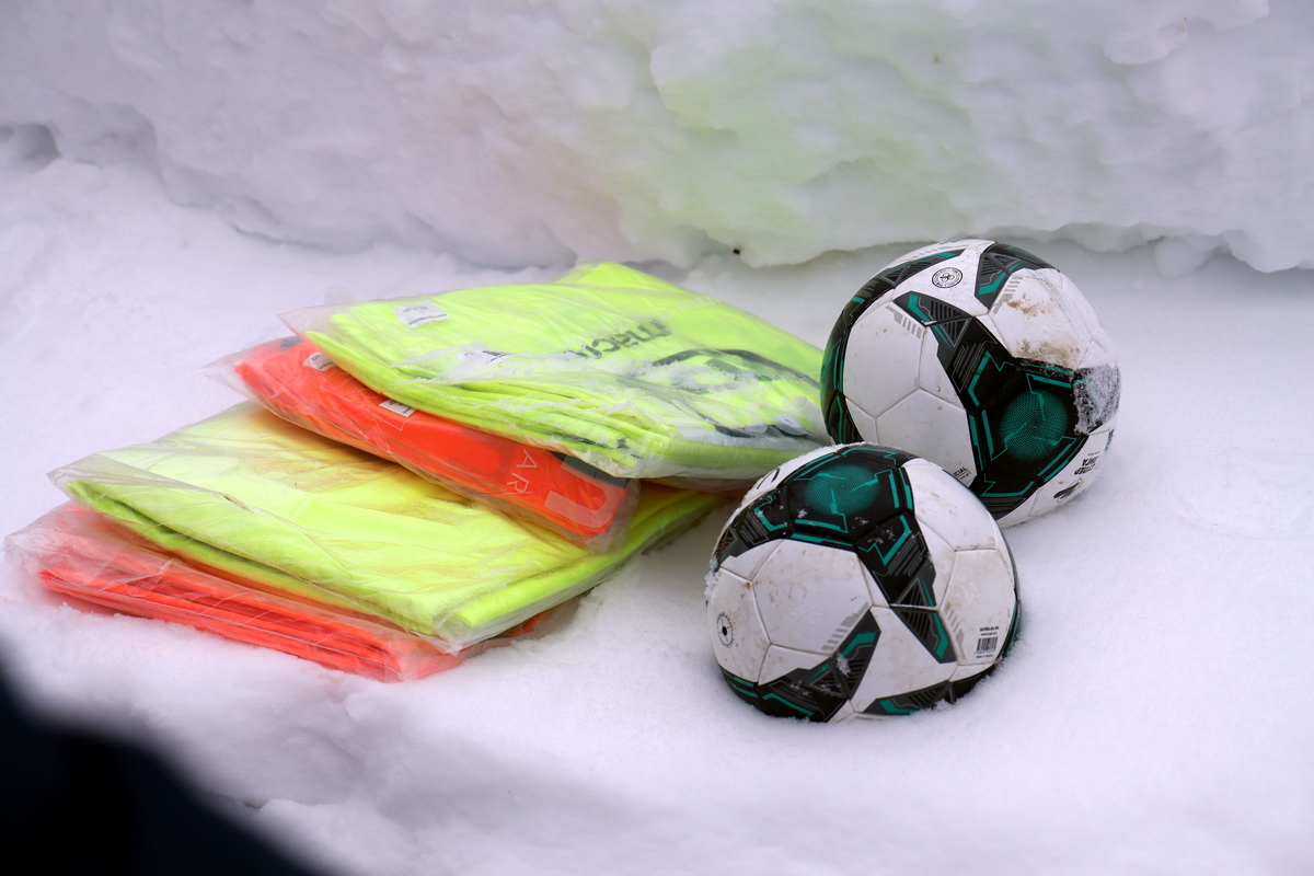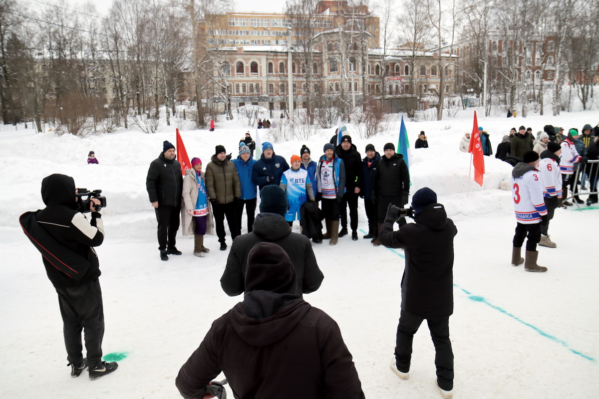 Участникам встречи напомнили, что главное не победа, а удовольствие от игры, поэтому на скользком поле попросили быть предельно аккуратными.