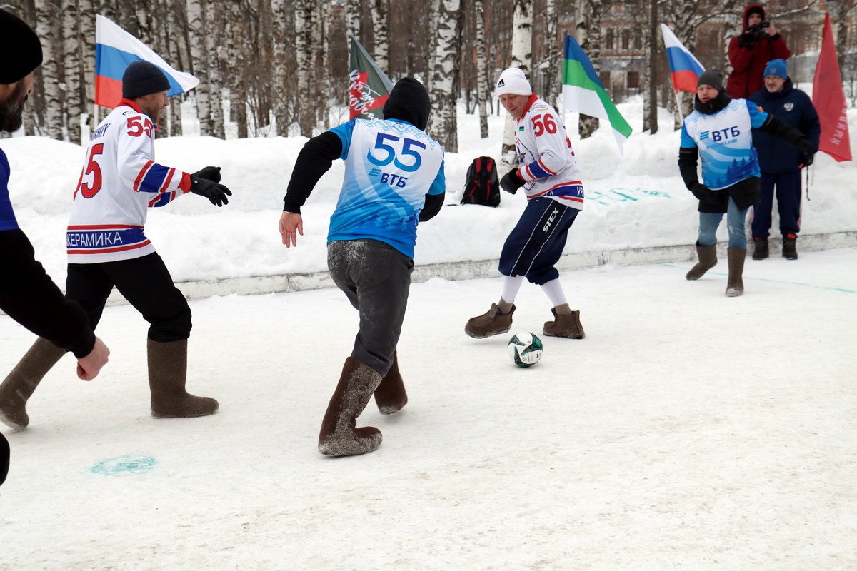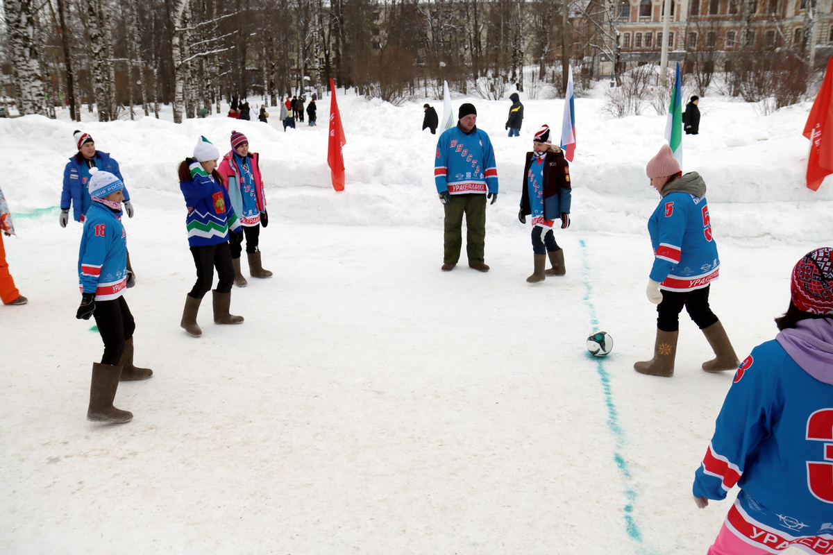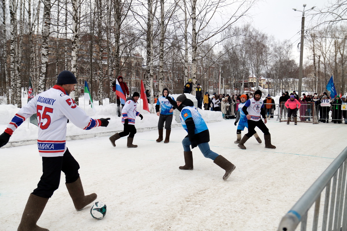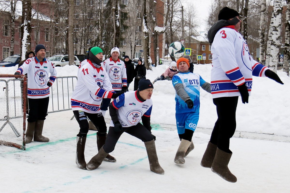 Восемь команд схлестнулись в ежегодном турнире по футболу в валенках в Сыктывкаре, посвященному 23 февраля. В Кировском парке задор и удаль показали команда предпринимателей, СШ "Юность", "группа Министра", женская команда "Юность нывка", спецназ, ГАИ, МЧС и сборная силовиков.