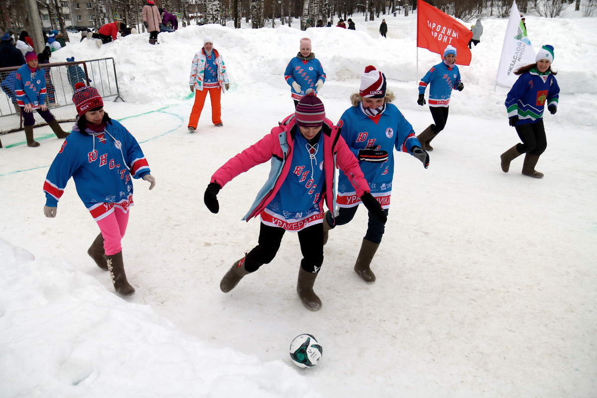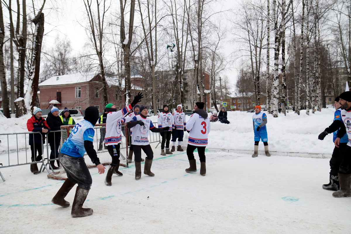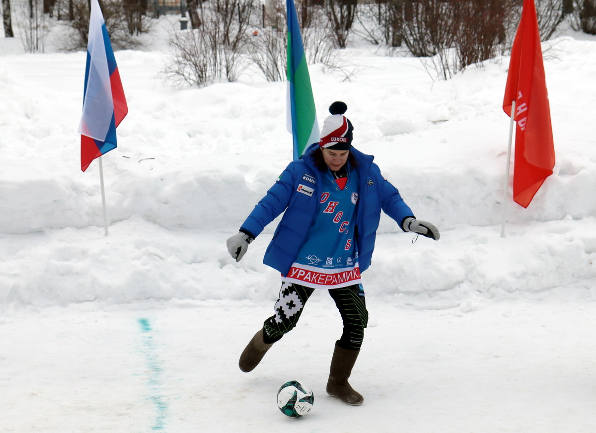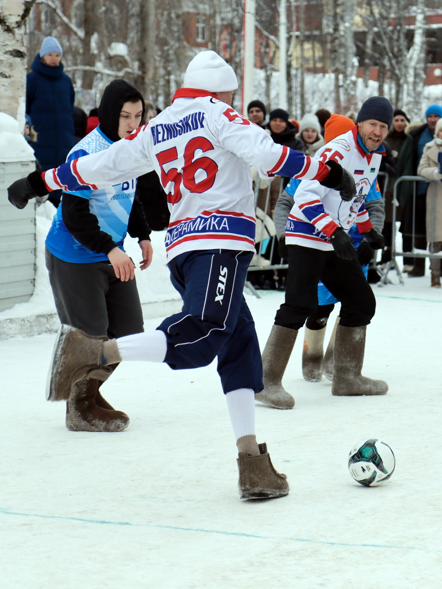 Восемь команд схлестнулись в ежегодном турнире по футболу в валенках в Сыктывкаре, посвященному 23 февраля. В Кировском парке задор и удаль показали команда предпринимателей, СШ "Юность", "группа Министра", женская команда "Юность нывка", спецназ, ГАИ, МЧС и сборная силовиков.