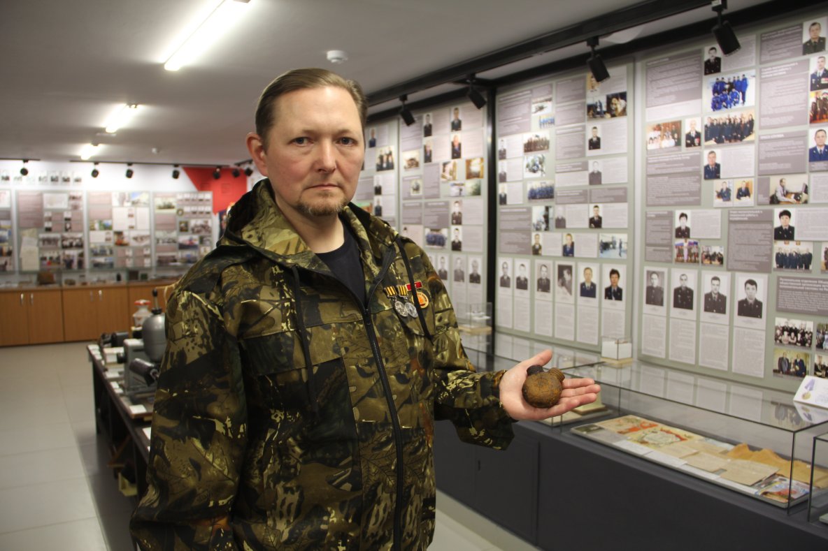 – Своего музея у поискового отряда нет, поэтому мы благодарны руководству УФСИН, которые пошли навстречу, и мы совместно с хранителем фондов постоянно действующей экспозиции Ольгой Митиной выставили часть найденных артефактов Великой Отечественной войны, – отметил Александр Сергеевич, открывая экспозицию. – Самая важная для нас находка – это смертный солдатский медальон, эбонитовая капсула с колпачком. Здесь на выставке у нас тоже представлен один такой медальон, правда, оригинал записки, который мы нашли в медальоне, был в очень плохом состоянии, поэтому здесь выставлена копия.