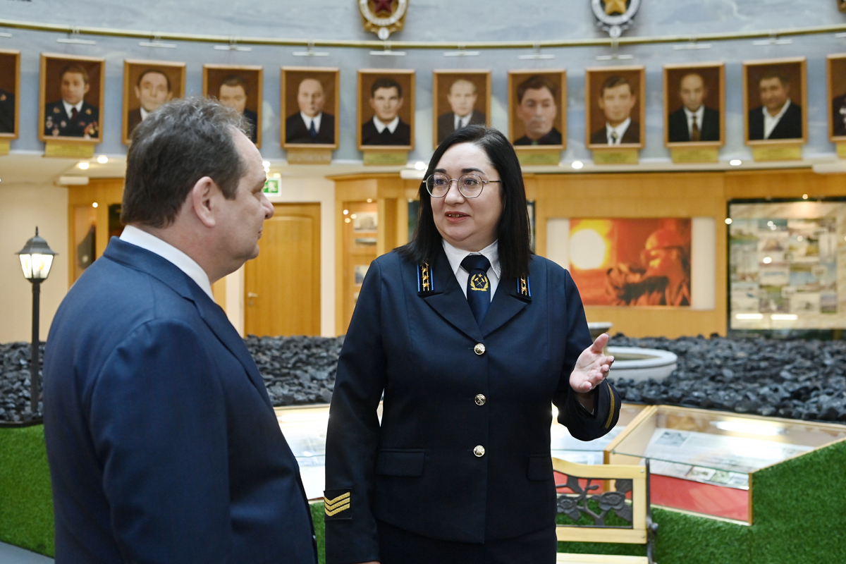 Демонстрируя преемственность поколений и переход от славного прошлого к технологичному настоящему, Ростиславу Гольдштейну также представили современный центр управления производством – цифровую диспетчерскую "ВоркутаУголь", расположенную в здании Исполнительного аппарата компании.