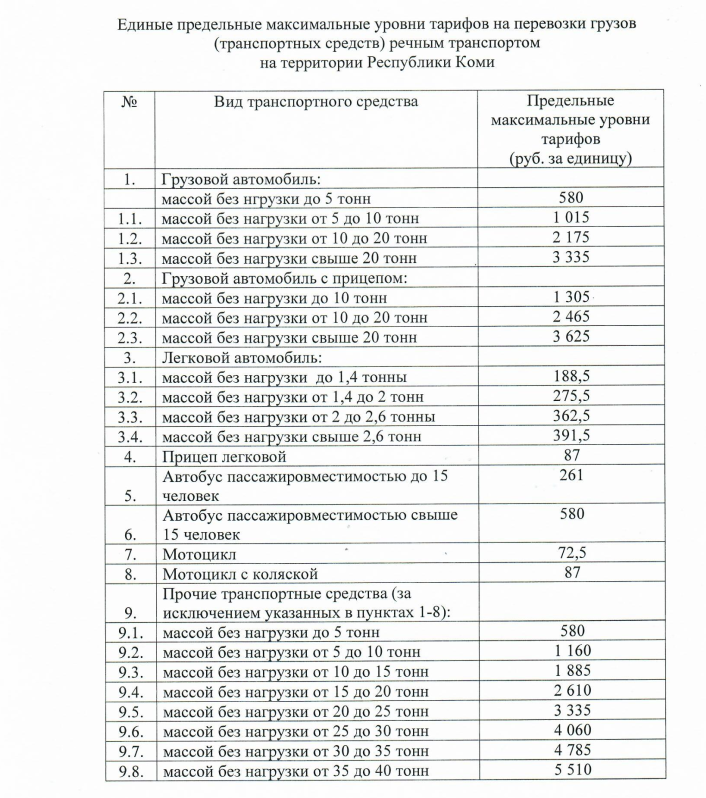 Комитет по тарифом Коми опубликовал приказ об установлении единых предельных максимальных уровней тарифов на перевозки грузов, пассажиров и багажа на территории республики.