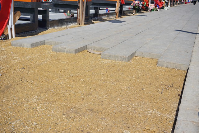 Часть мемориальных плит и мест захоронений уже обустроены. В целом здесь расположатся 64 мемориальные плиты с портретами и именами погибших. Все они будут выполнены из гранита.