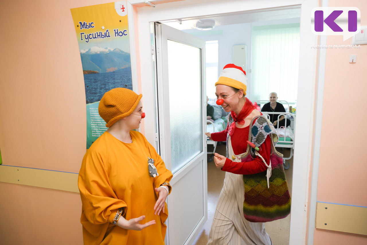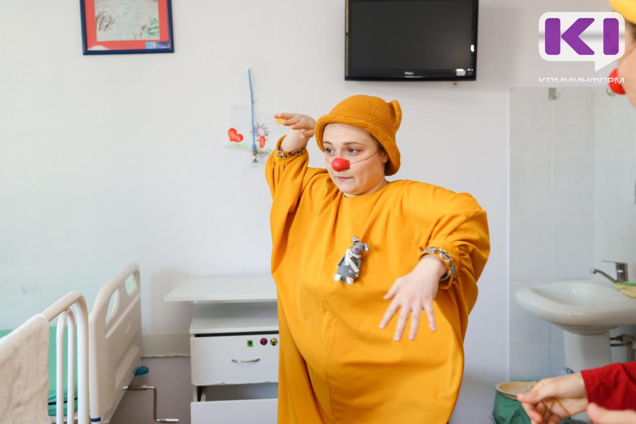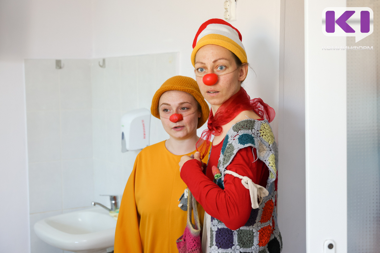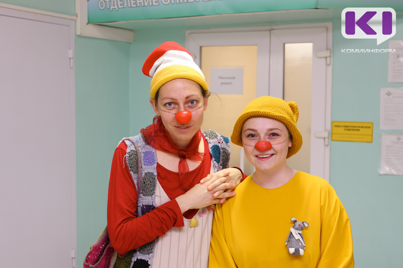Елена Лебедева, надевая красный нос, превращается в клоуна Плюща, который готов бесконечно удивляться и удивлять, а еще обнимать и танцевать. Клоун Ива - Наталья Петрунина - любит озорничать, находить забытые конфеты в карманах и дарить тепло. В творческом тандеме они два дня подряд старались вырвать детей, которые лежат в отделении онкогематологии РДКБ, из привычной обыденности, состоящей из капельниц, таблеток и других атрибутов болезни. Это особенно важно для детей, которые, оставшись в палате, могут страдать от стресса и одиночества.