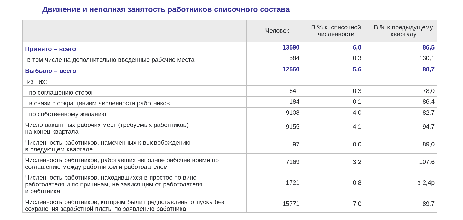 За квартал было принято 13,6 тысяч новых сотрудников, что составило 6% от общей численности работников. Примечательно, что на дополнительно созданные рабочие места трудоустроено 584 человека. Текучесть кадров остается на умеренном уровне – выбыло 12,6 тысяч работников (5,6% от списочной численности).