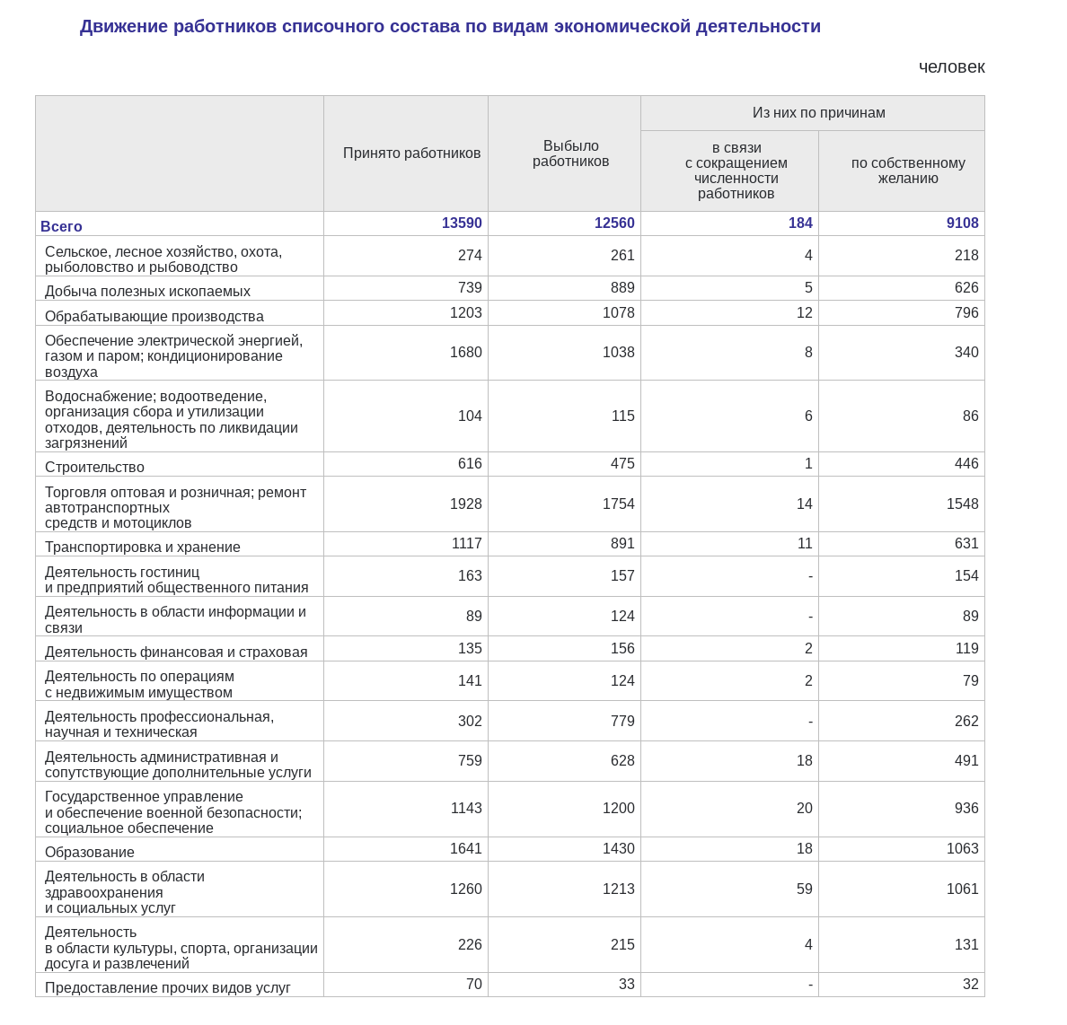 Основной причиной увольнения остается собственное желание работников – 9108 человек. Сокращений было немного – всего 184 человека по всей республике.
