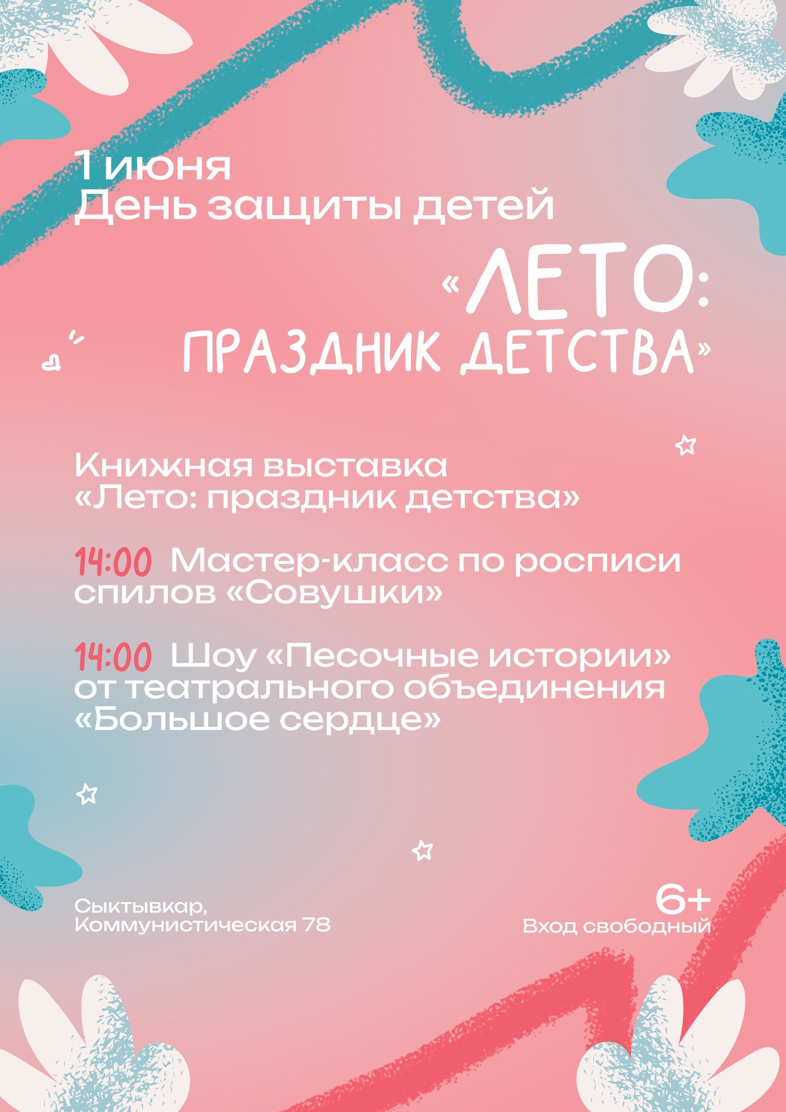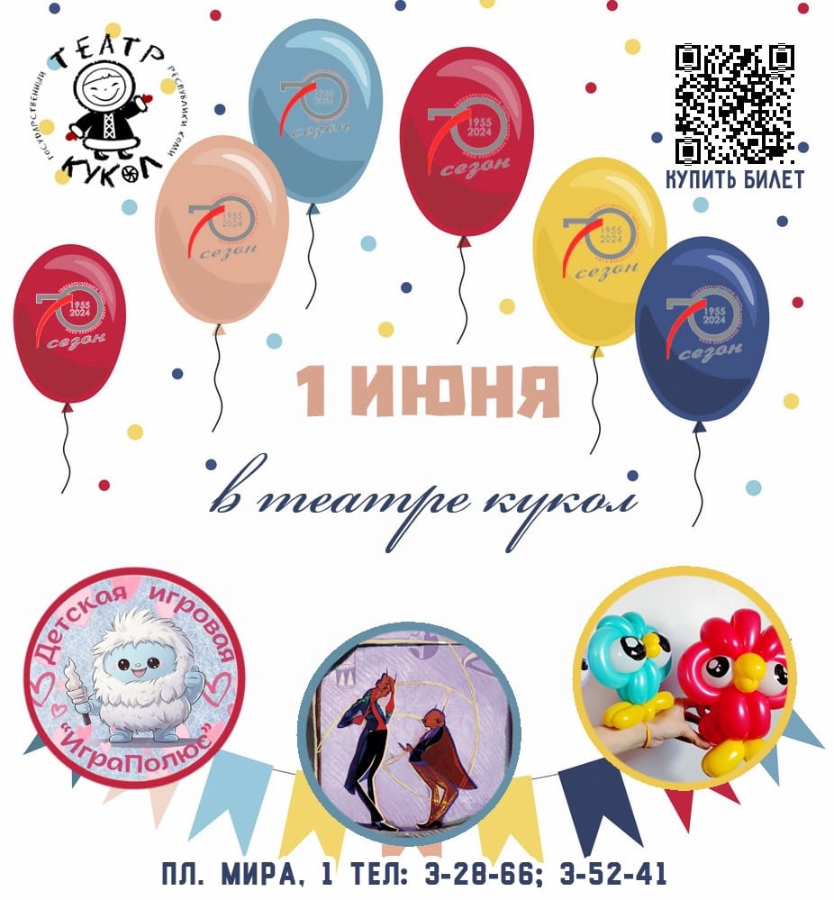 Государственный театр кукол Республики Коми приглашает в 13:00 на праздничную программу ко Дню защиты детей (3+).