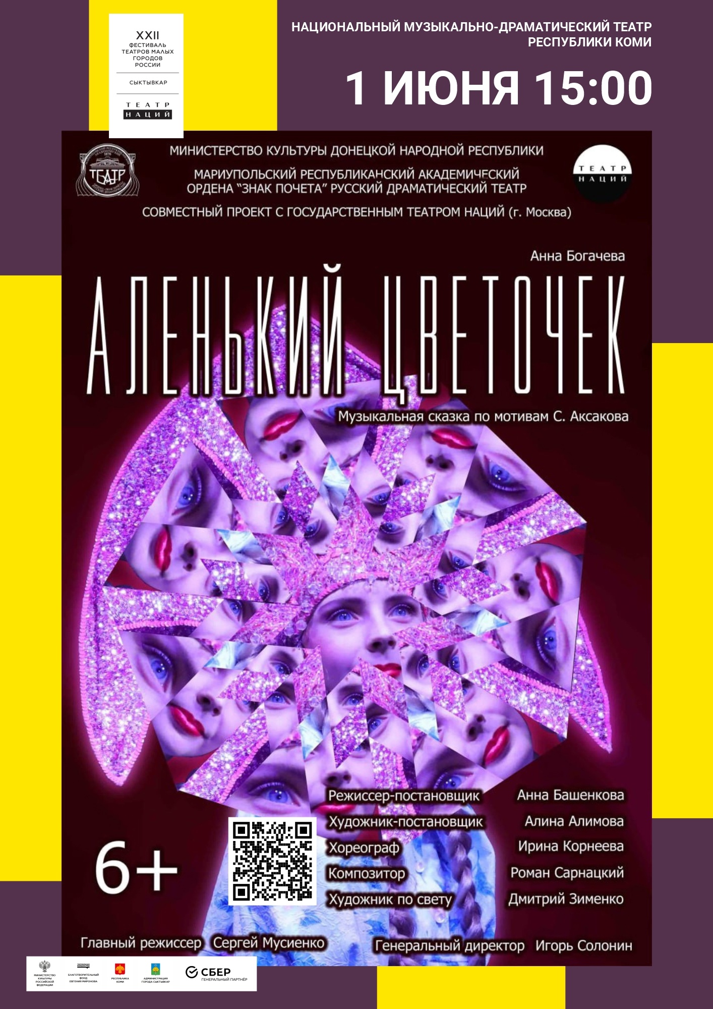 Национальный музыкально-драматический театр Республики Коми в 15:00 покажет сказку "Аленький цветочек" Мариупольского республиканского академического ордена "Знак Почета" русского драматического театра (6+).