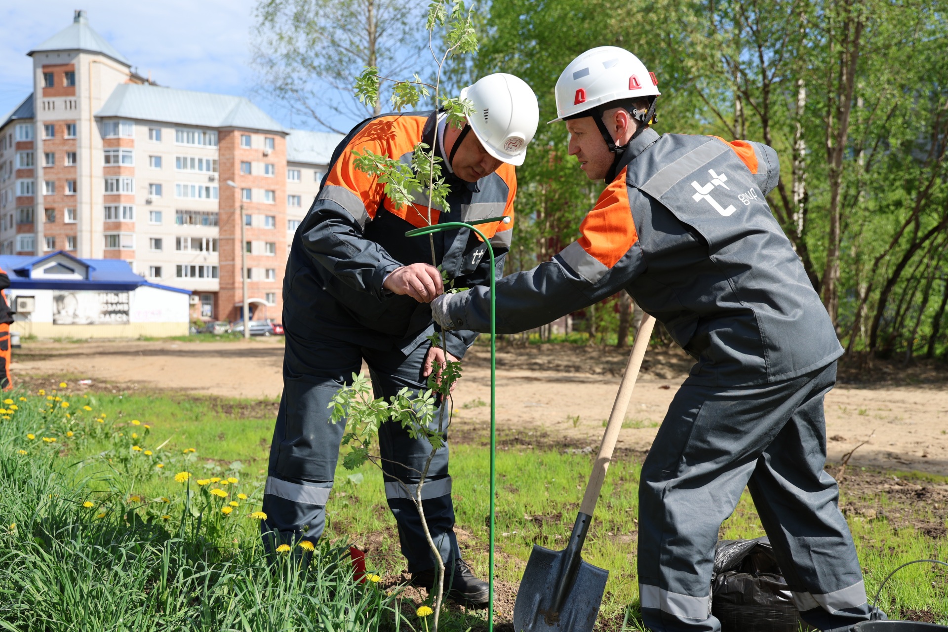Акция "Аллея памяти" проходит в Сыктывкарских тепловых сетях. Энергетики высаживают деревья в честь 80-летия Победы в Великой Отечественной войне.