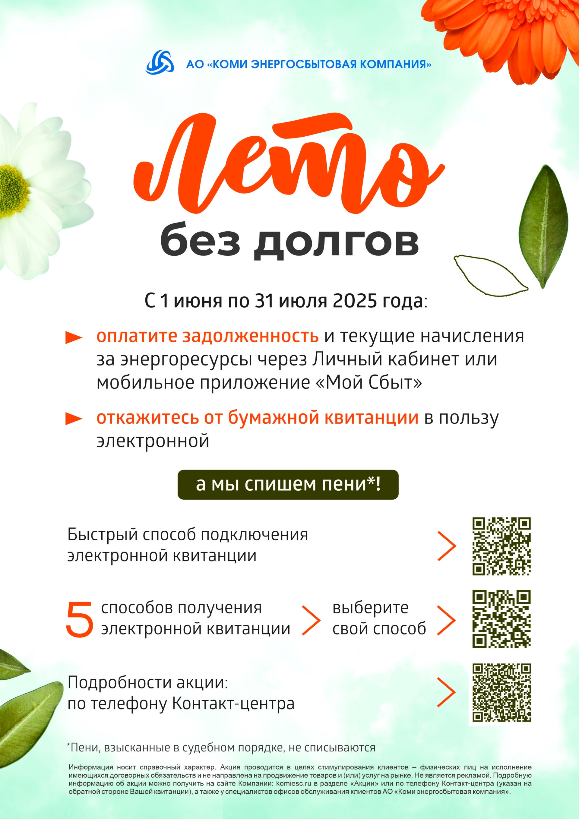 Летняя акция по списанию пеней* от КЭСК стартовала 1 июня и продлится до 31 июля. Именно в этот период клиенты могут избавиться от штрафных санкций за долги. Для этого необходимо оплатить задолженность и текущее начисление через личный кабинет клиента или мобильное приложение "Мой сбыт". Дополнительным, но важным условием является подключение электронной квитанции. Списание пеней отразится в квитанции в следующем платежном периоде.