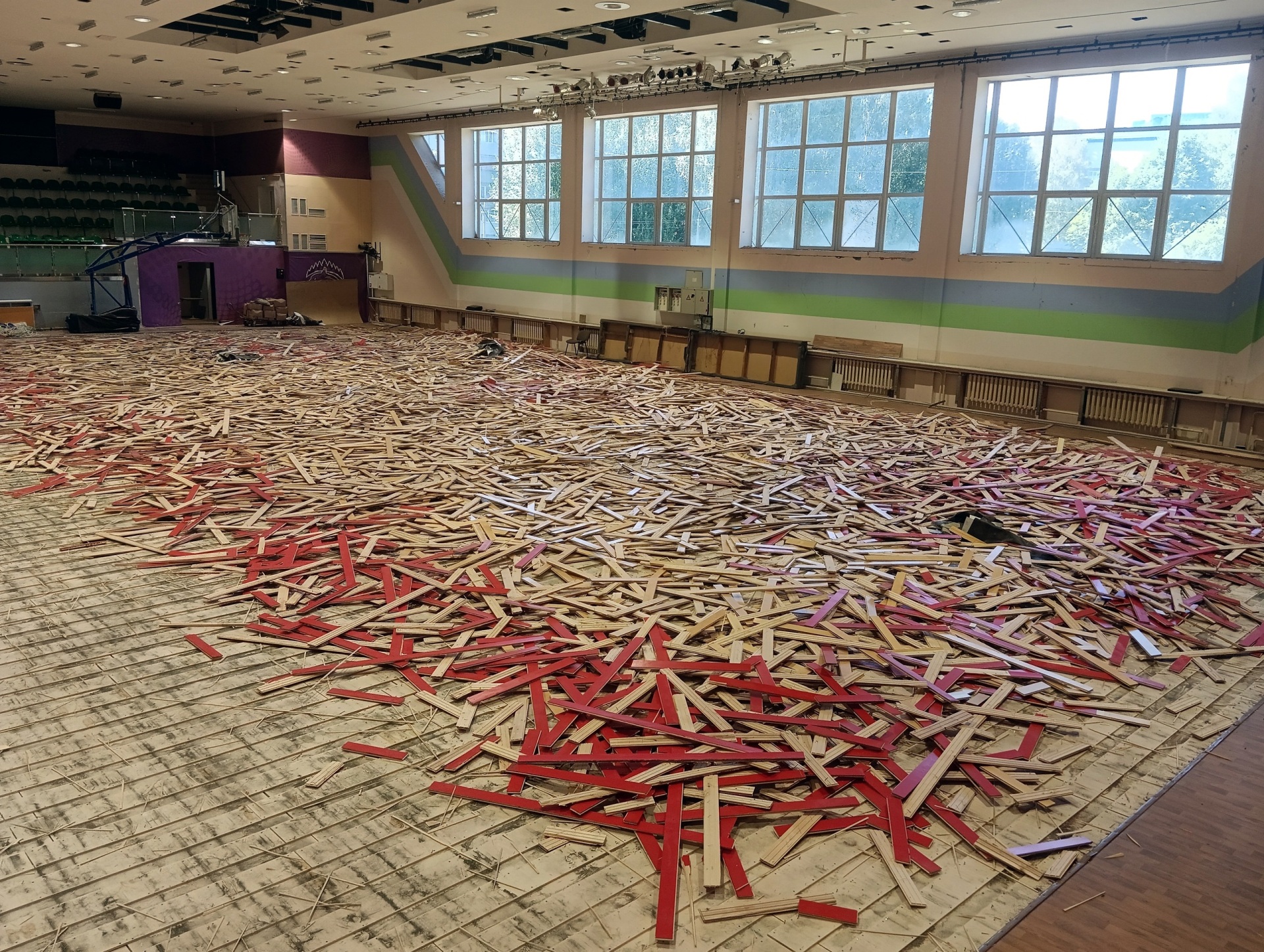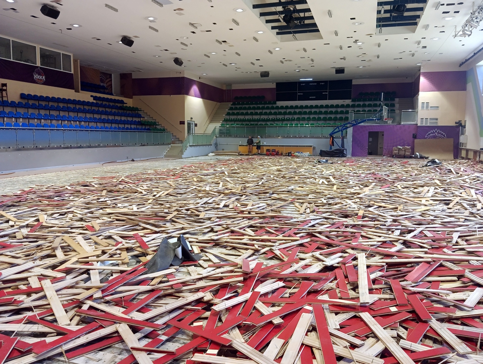 Подрядчик, который выполняет работы, с большим опытом. В его послужном списке залы в крупных городах как в России, так и за пределами. По мимо всего прочего, подобная технология укладки используется во всем мире и прекрасно себя зарекомендовала.