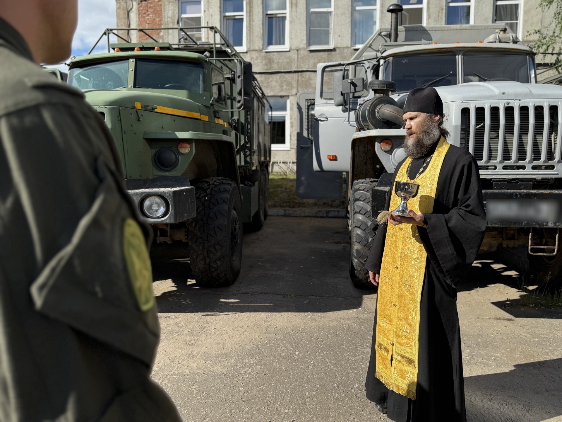 Также иерей Максим провел молебен и совершил освящение служебного транспорта сотрудников специальных подразделений Росгвардии.