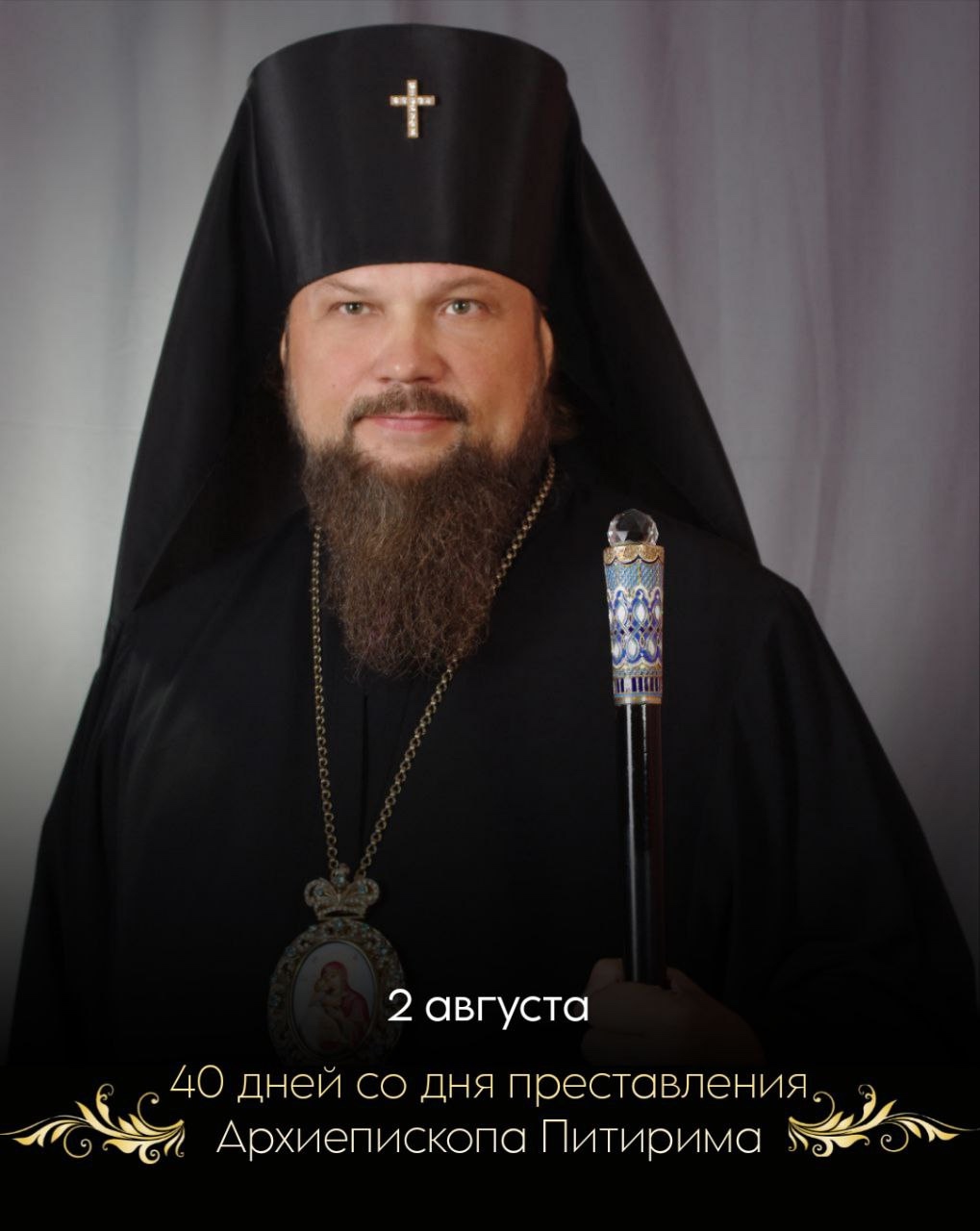 2 августа, в субботу, в день пророка Илии, исполняется 40 дней со дня кончины архиепископа Питирима - первого правящего архиерея Сыктывкарской епархии. О совершении Божественной литургии и панихиды в этот день сообщает Сыктывкарская епархия.