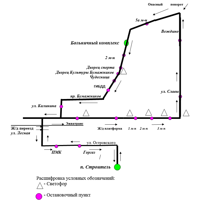 Маршрут №14 "п.Строитель - Больничный комплекс - п.Строитель" имеет протяженность 10,75 км, в том числе 5,7 км - в прямом, и 5,05 - в обратном направлении. Ежегодный объем работ для подрядчика составляет 235,4 тыс. км.