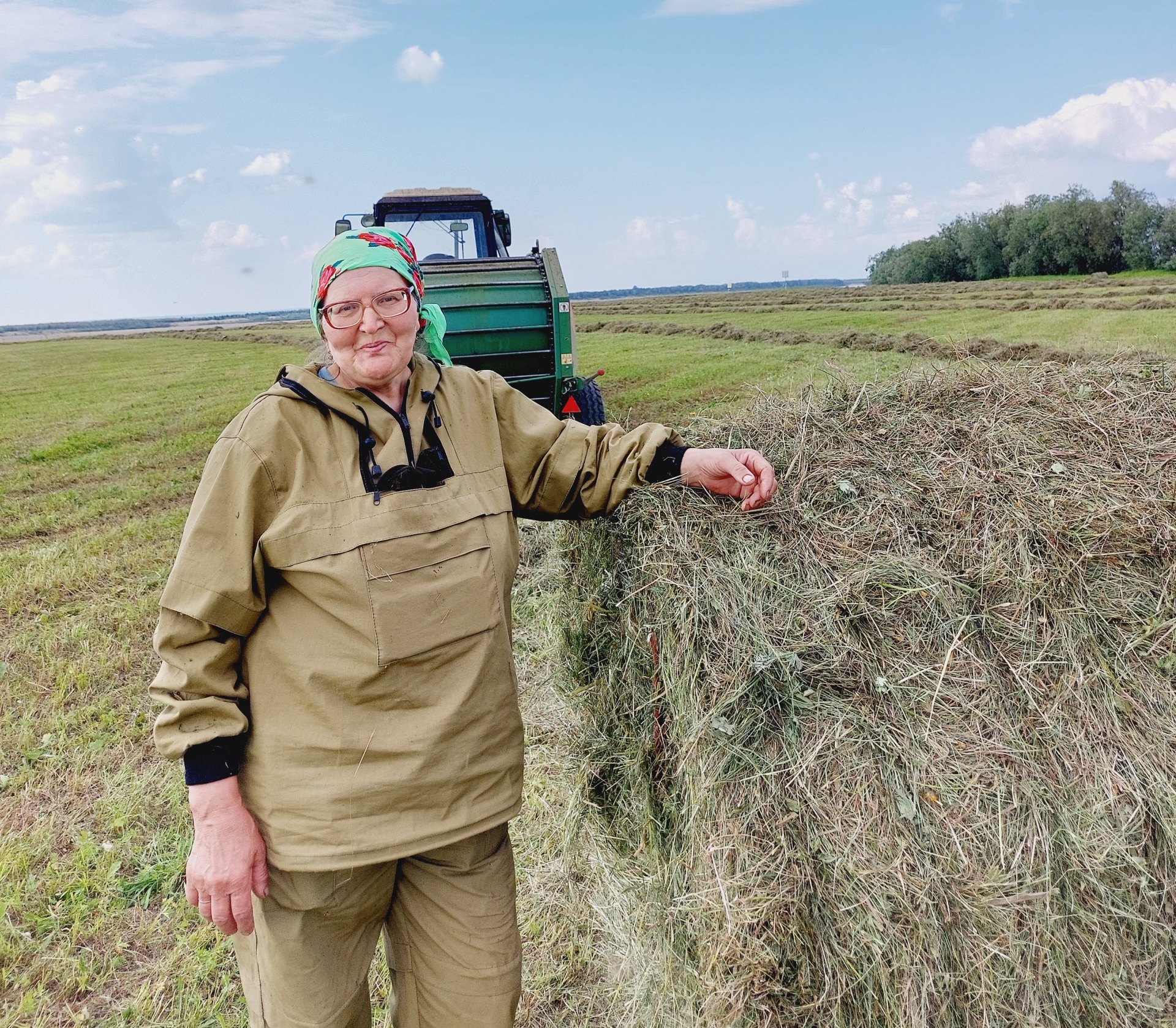 Людмила Соколова имеет высшее сельскохозяйственное образование, опыт работы в животноводстве более 30 лет. В периоды кормозаготовки ее большая семья объединена целью обеспечить выполнение работ в оптимальные сроки. Несмотря на невысокую урожайность естественных трав, труднодоступность сенокосов, все работы выполняются слаженно и оперативно.