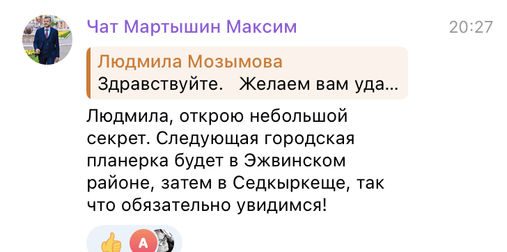 Из общения с еще одной подписчицей М.Мартышин анонсировал изменения в организации традиционных городских планерок.