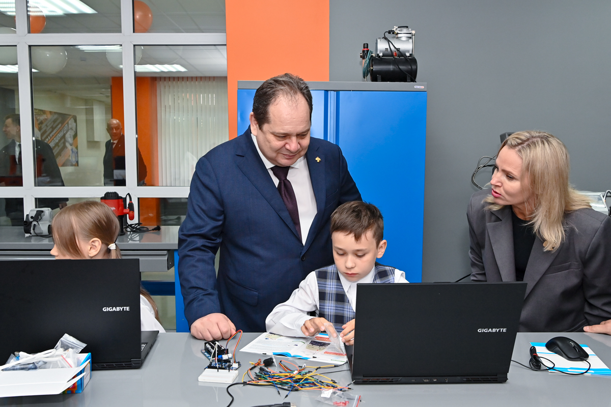 Глава региона осмотрел специализированные классы центра: медицинский, робототехники, черчения, механической обработки материалов, а также уникальный для школ республики багги-центр. В каждом из них установлено современное оборудование - станки с ЧПУ, 3D-принтеры, учебные комплексы по электротехнике, муфельные печи, универсальные твердомеры и манекены для отработки навыков оказания первой помощи.