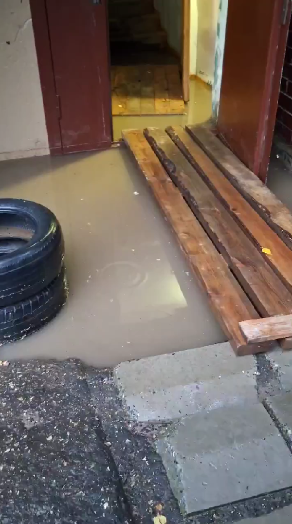 "Торговый двор" и входы в подъезды жилых домов тоже начало подтапливать.