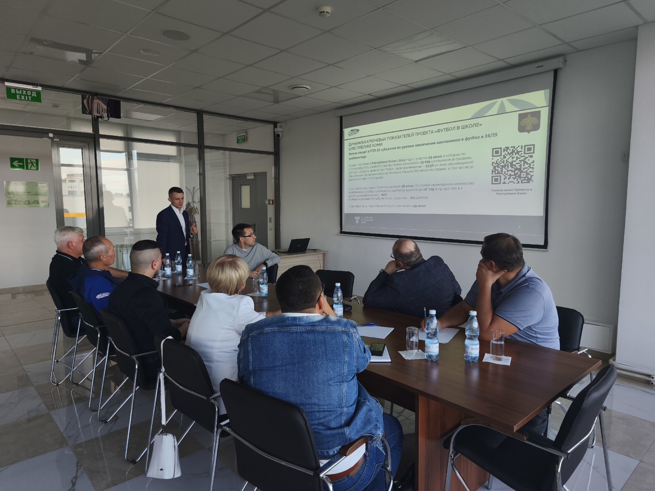 Завершился день рабочей встречей РФС с Федерацией футбола Коми, Минобрнауки и Минспорта Коми. Участники подробно обсудили методическую поддержку проекта и его развитие в регионе. В том числе подняли вопрос о реализации программы в детских садах и коррекционных школах.