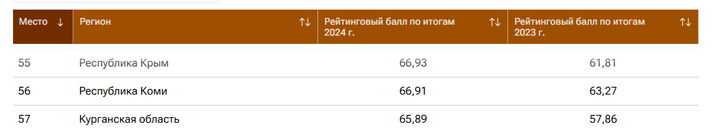 Значение среднего рейтингового балла Коми составило в 2024 году 66,91, тогда как годом ранее было 63,27.