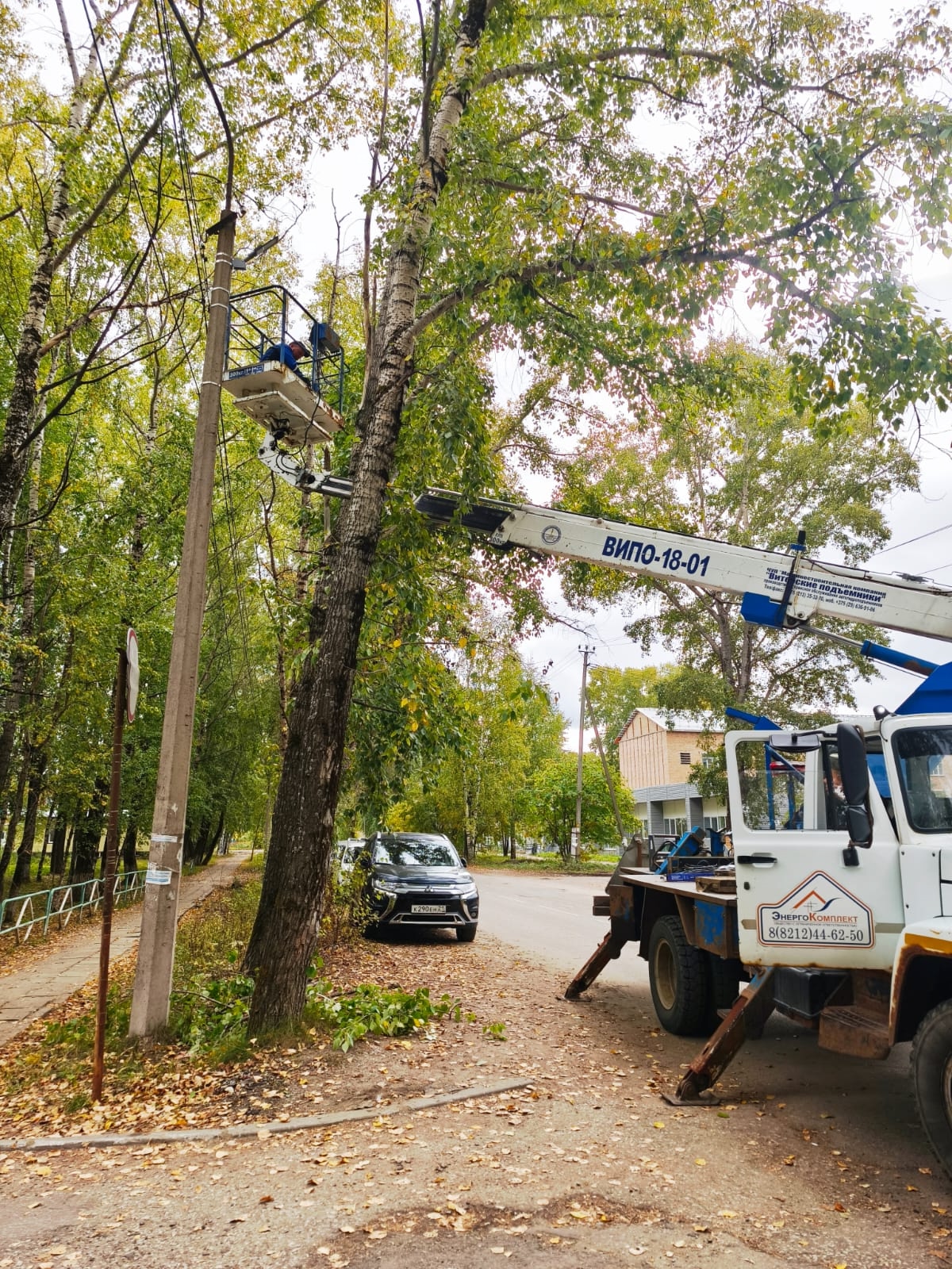 В связи с этим власти Княжпогостского района приняли решение организовать работы в рамках технического обслуживания городских линий электропередач. Специалисты ООО "Энергокомплект" обрезали ветки деревьев вблизи фонарей, которые мешали уличному освещению. Также администрация района рассказала, что на фонарном столбе по улице Гущина будет заменен светильник.