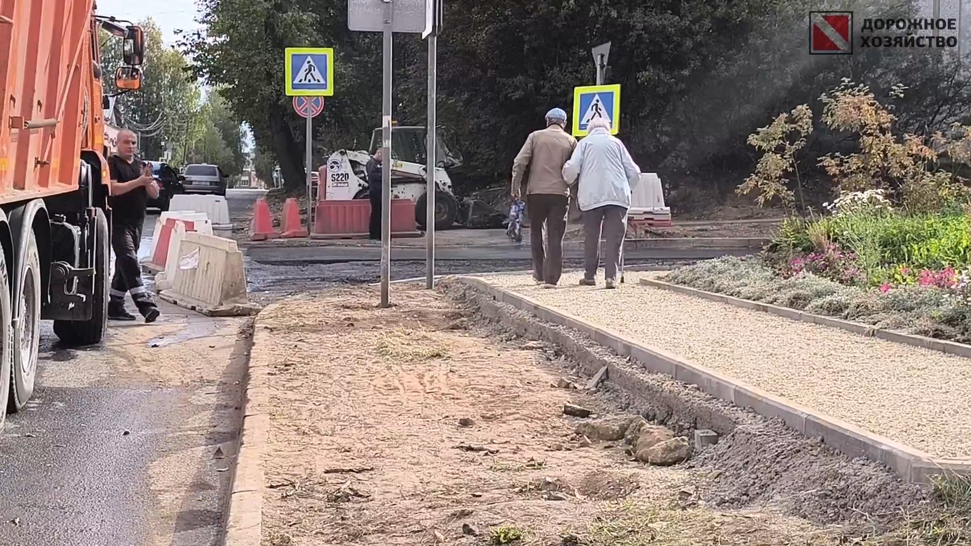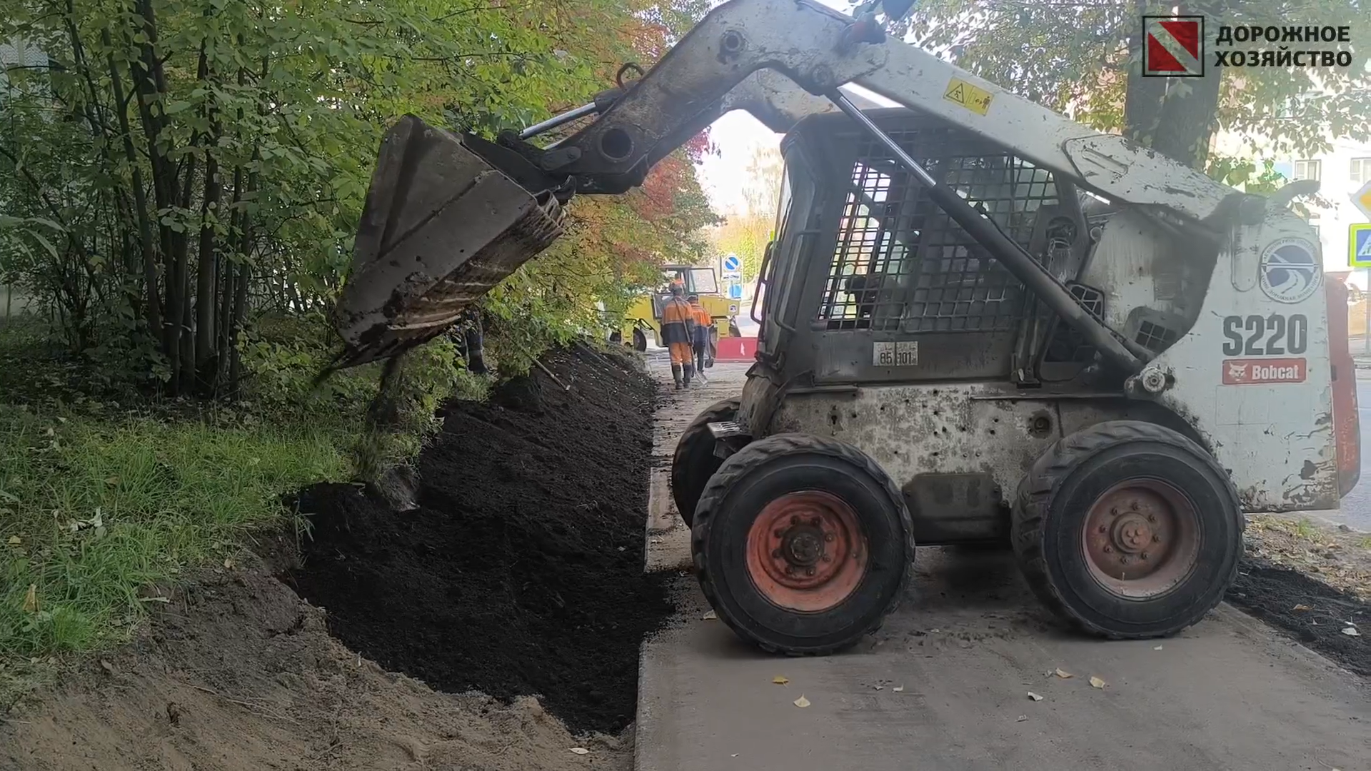 Работы идут полным ходом. Уже сейчас на Карьерной улице появились новые, аккуратные тротуары. Параллельно ведется активное благоустройство территории: на обочины вносят плодородный грунт для последующего посева газонной травы.