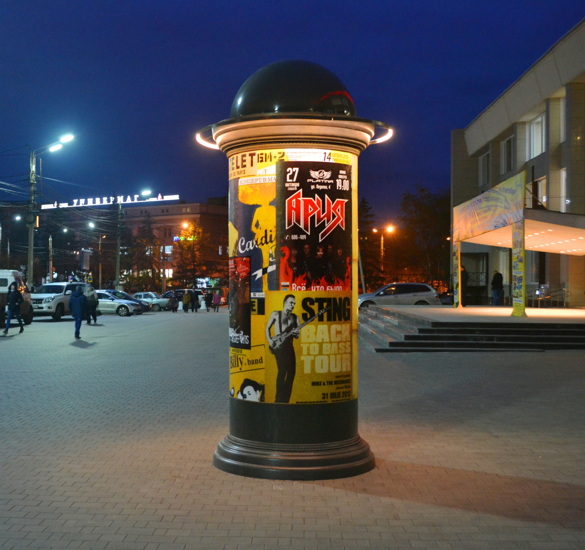 Там появится афишная тумба из полиэфирного стеклопластика высотой более 3 м. Она предназначена для размещения рекламных и информационных изображений.