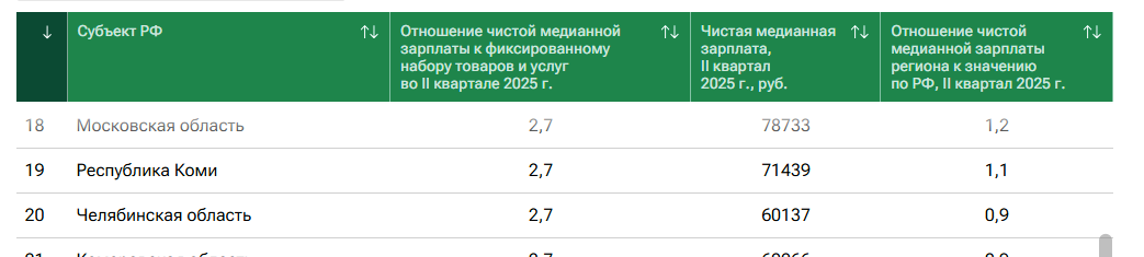 Республика Коми заняла 19-е место среди регионов России по уровню медианной заработной платы во втором квартале 2025 года. Об этом пишет РИА Новости.