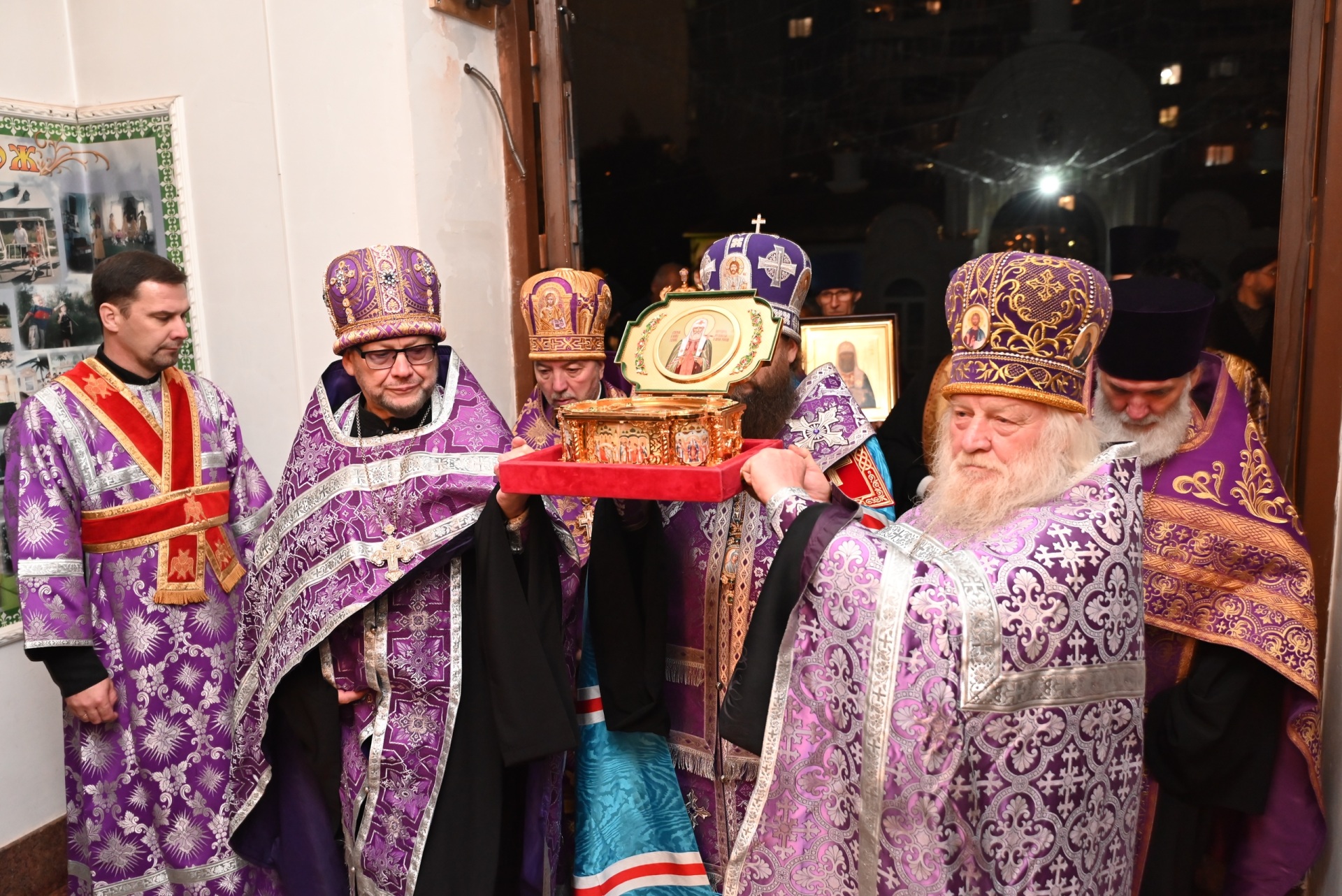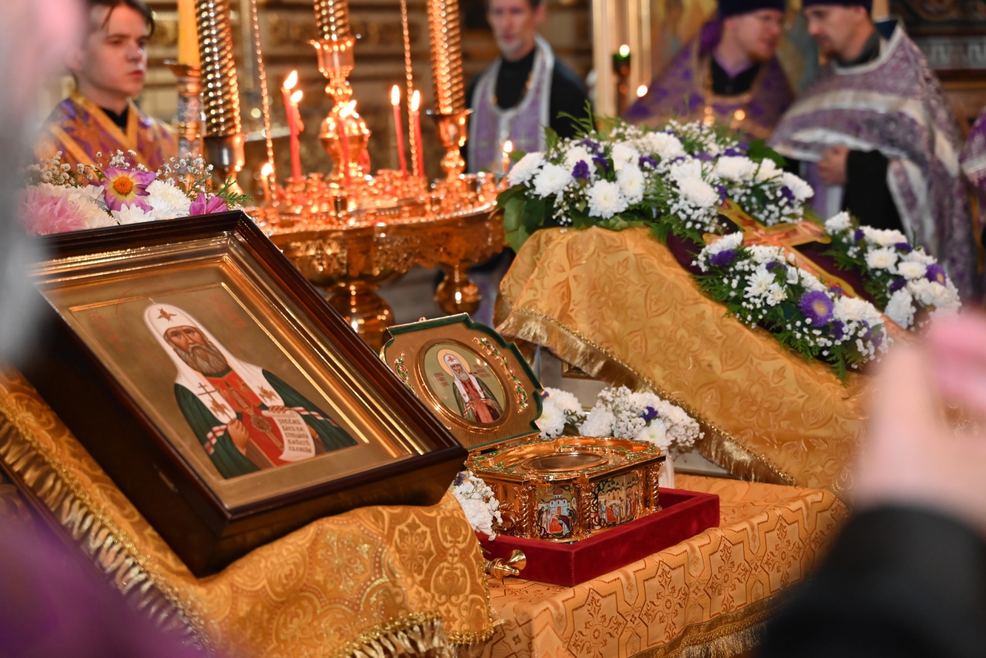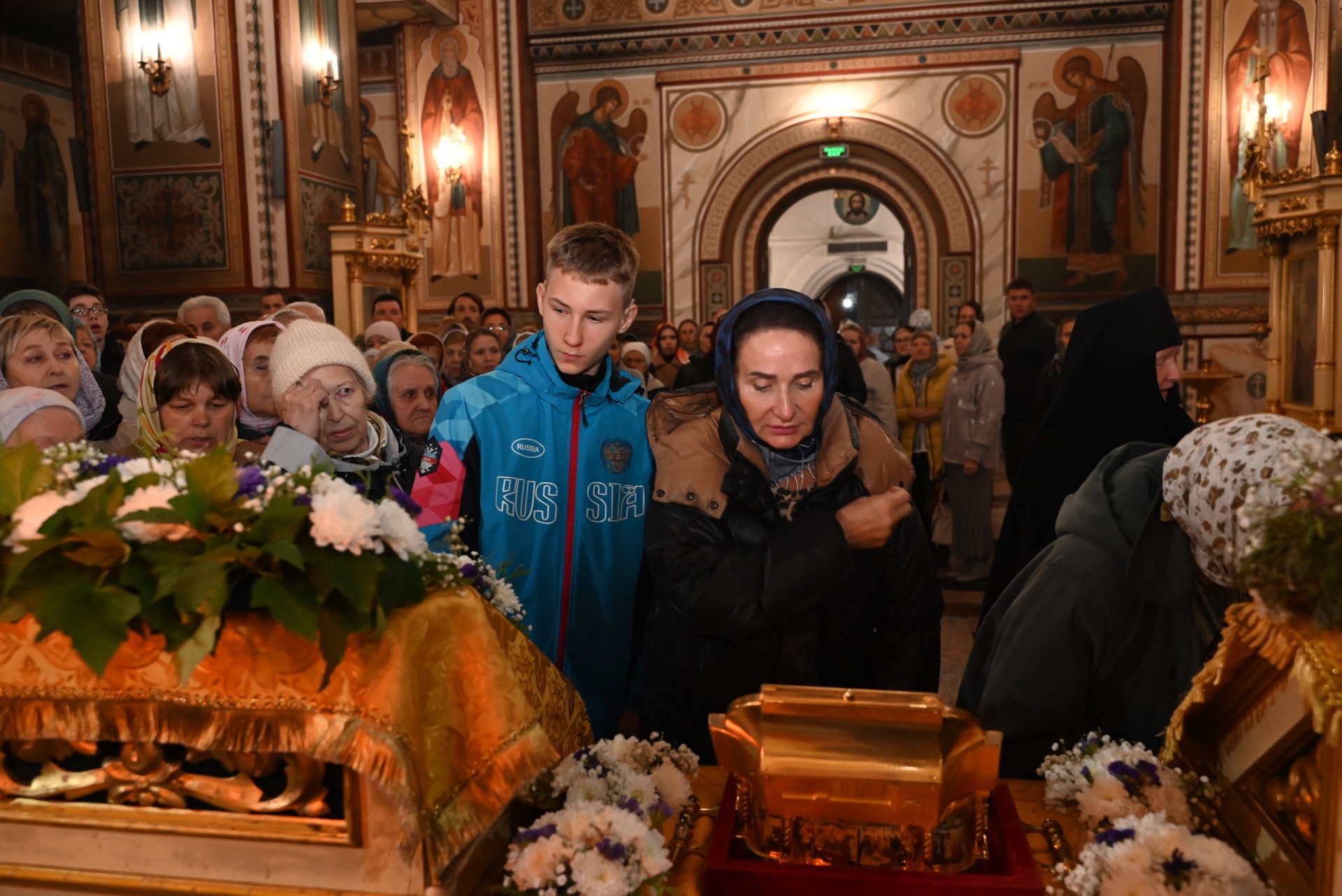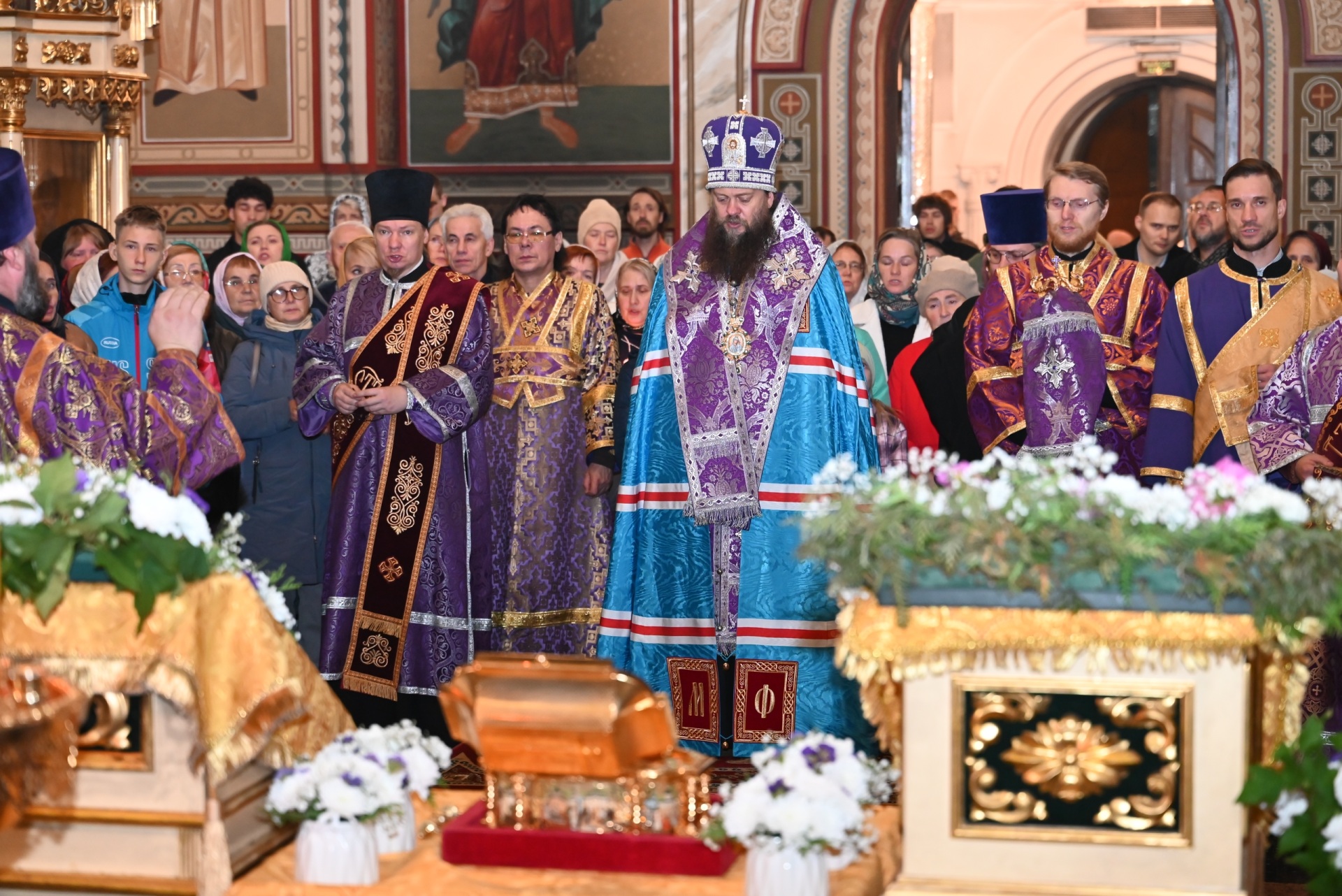 Владыка Филипп совершил краткий молебен, благословил народ мощами и обратился к пастве с приветственным словом. Он подчеркнул особую духовную радость от прибытия святыни в наши земли и призвал верующих обязательно прийти к мощам великого угодника Божия, чтобы испросить его молитвенной помощи, а также привести детей для благословения.