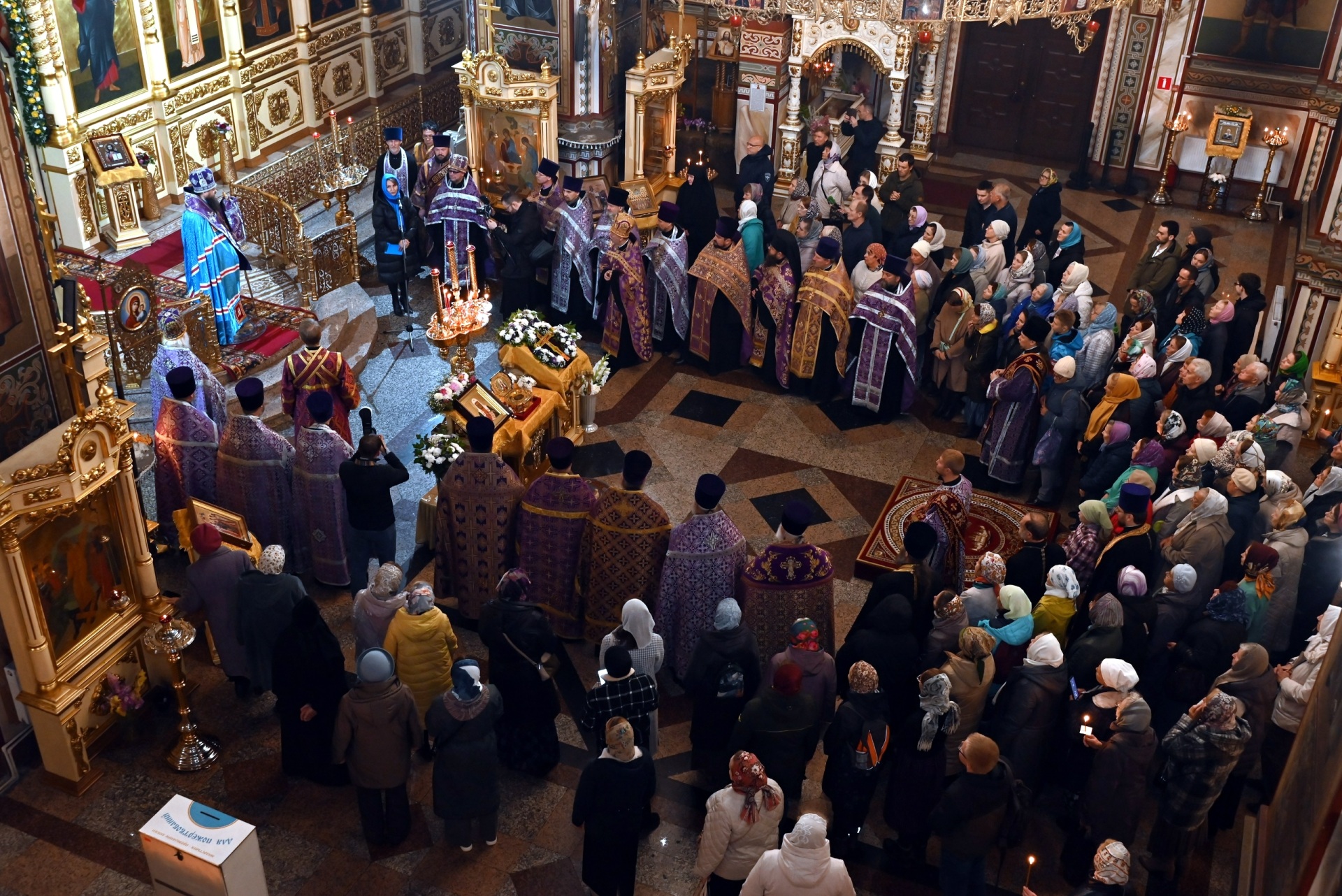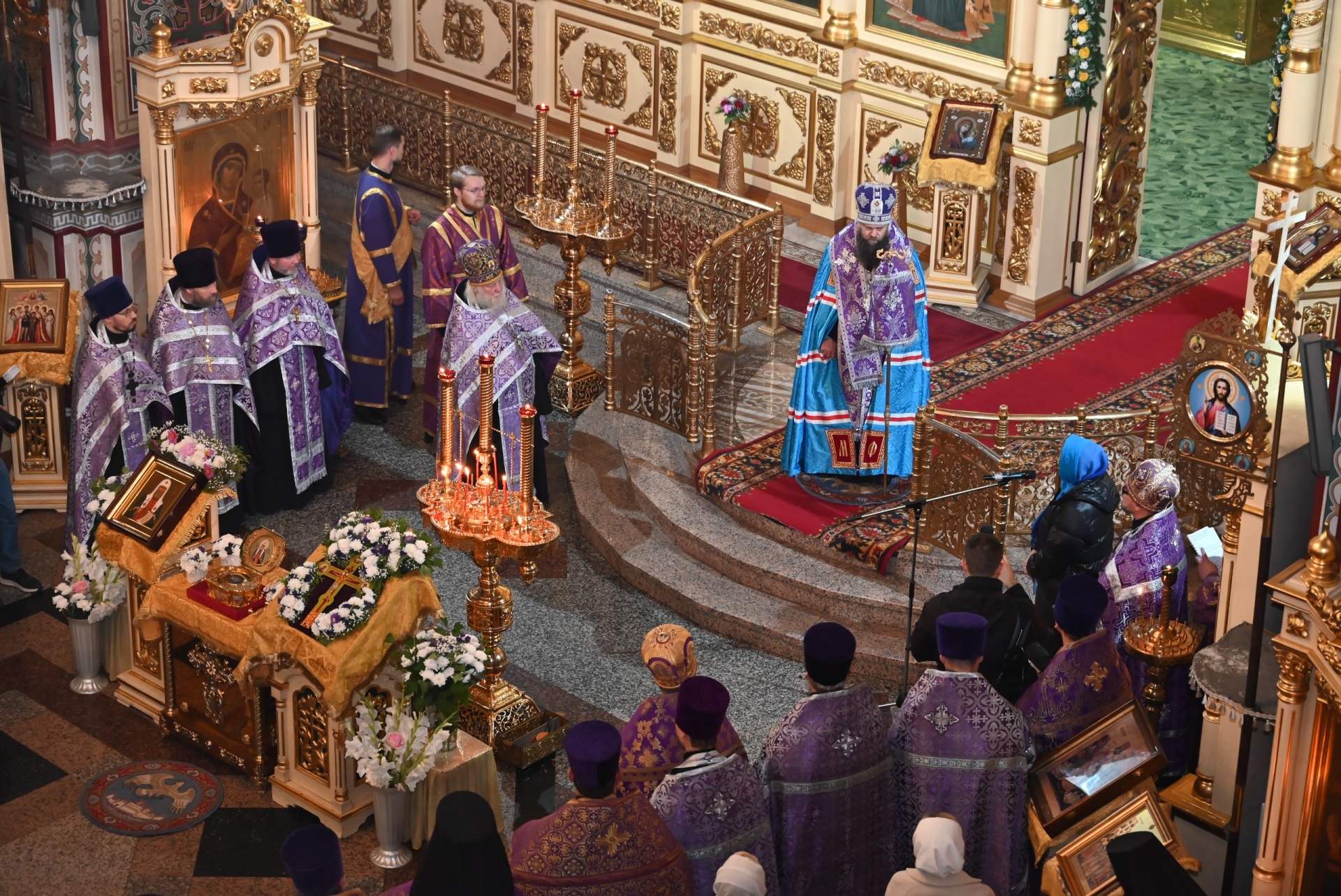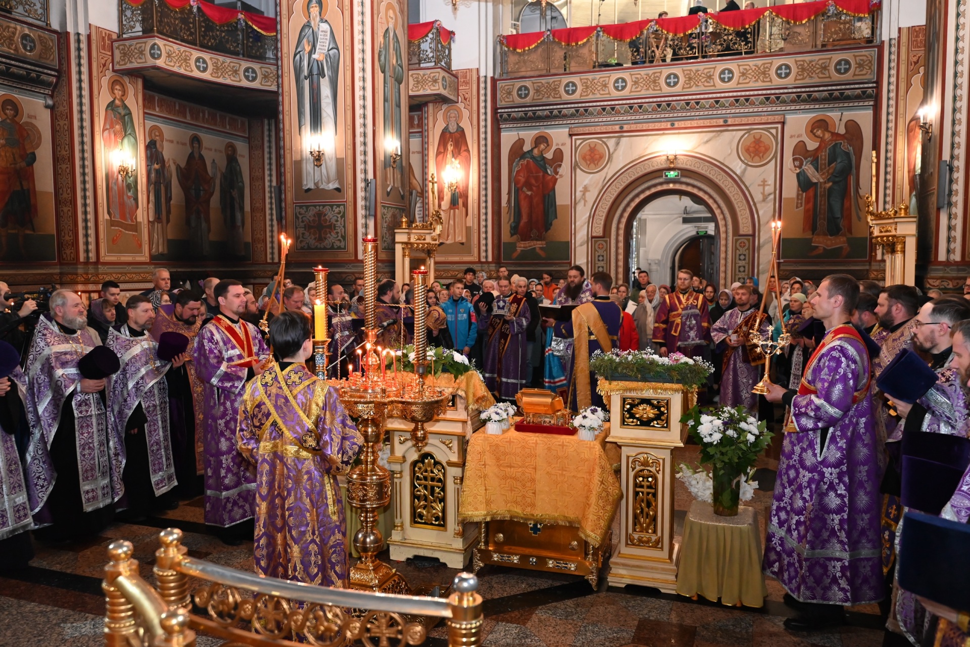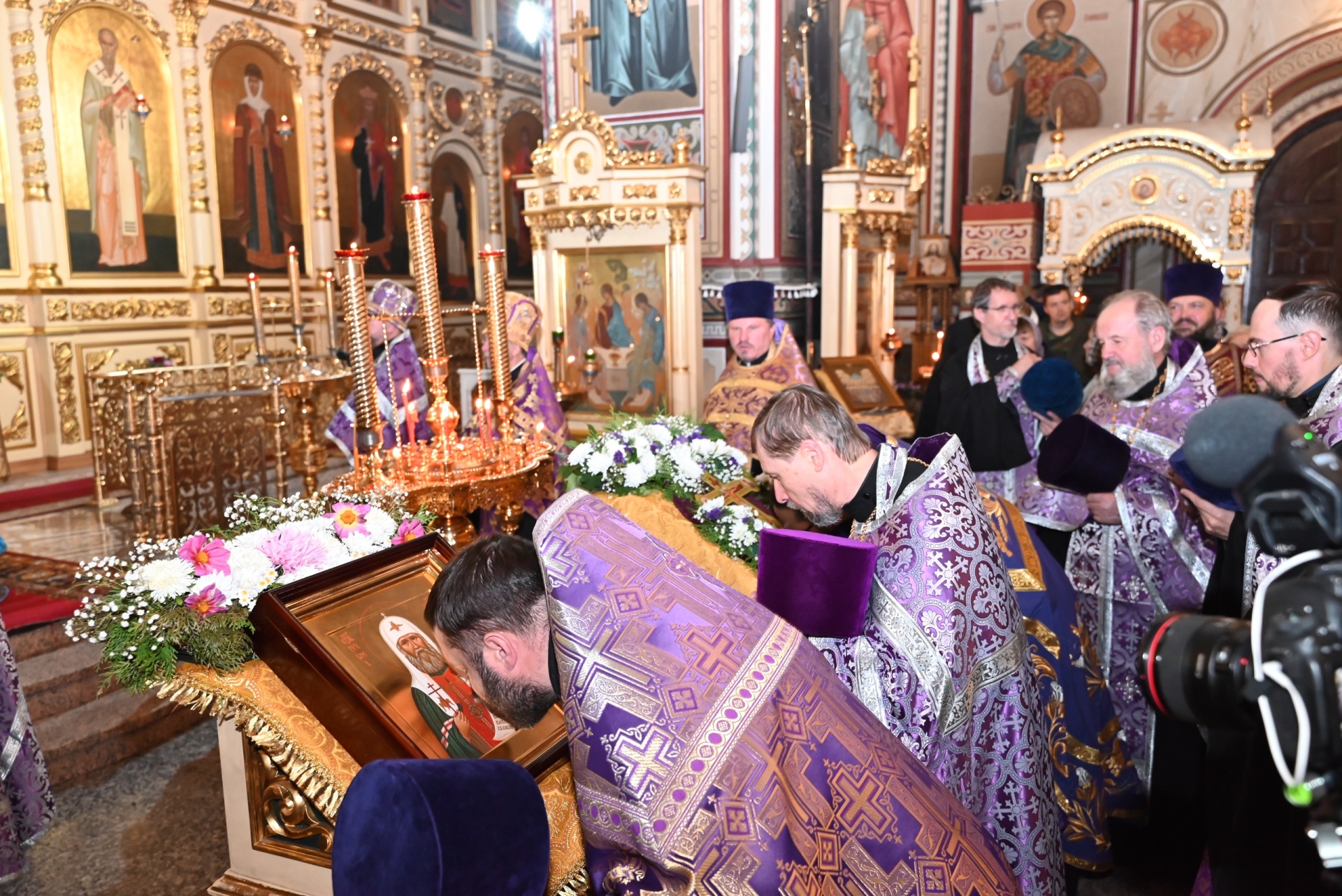 Владыка Филипп совершил краткий молебен, благословил народ мощами и обратился к пастве с приветственным словом. Он подчеркнул особую духовную радость от прибытия святыни в наши земли и призвал верующих обязательно прийти к мощам великого угодника Божия, чтобы испросить его молитвенной помощи, а также привести детей для благословения.