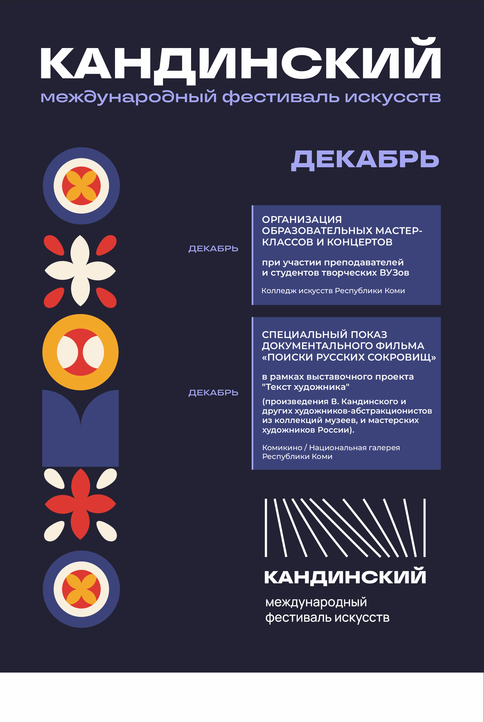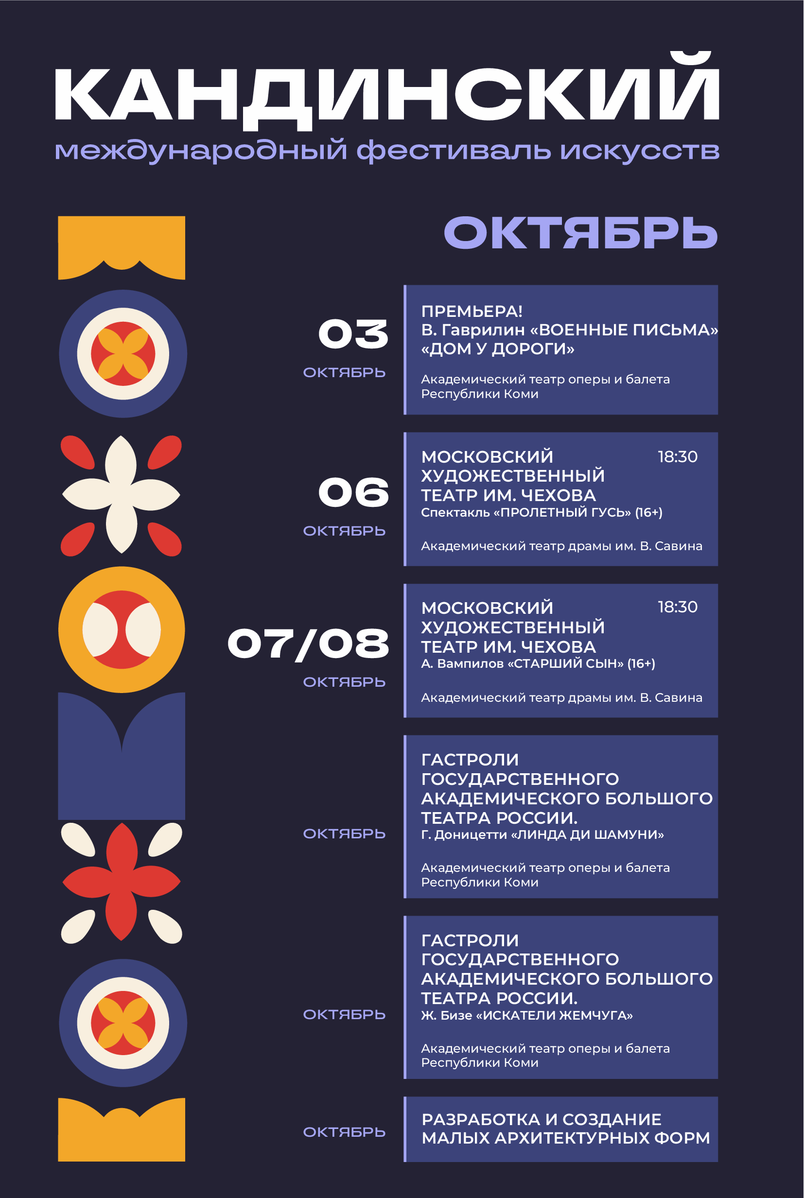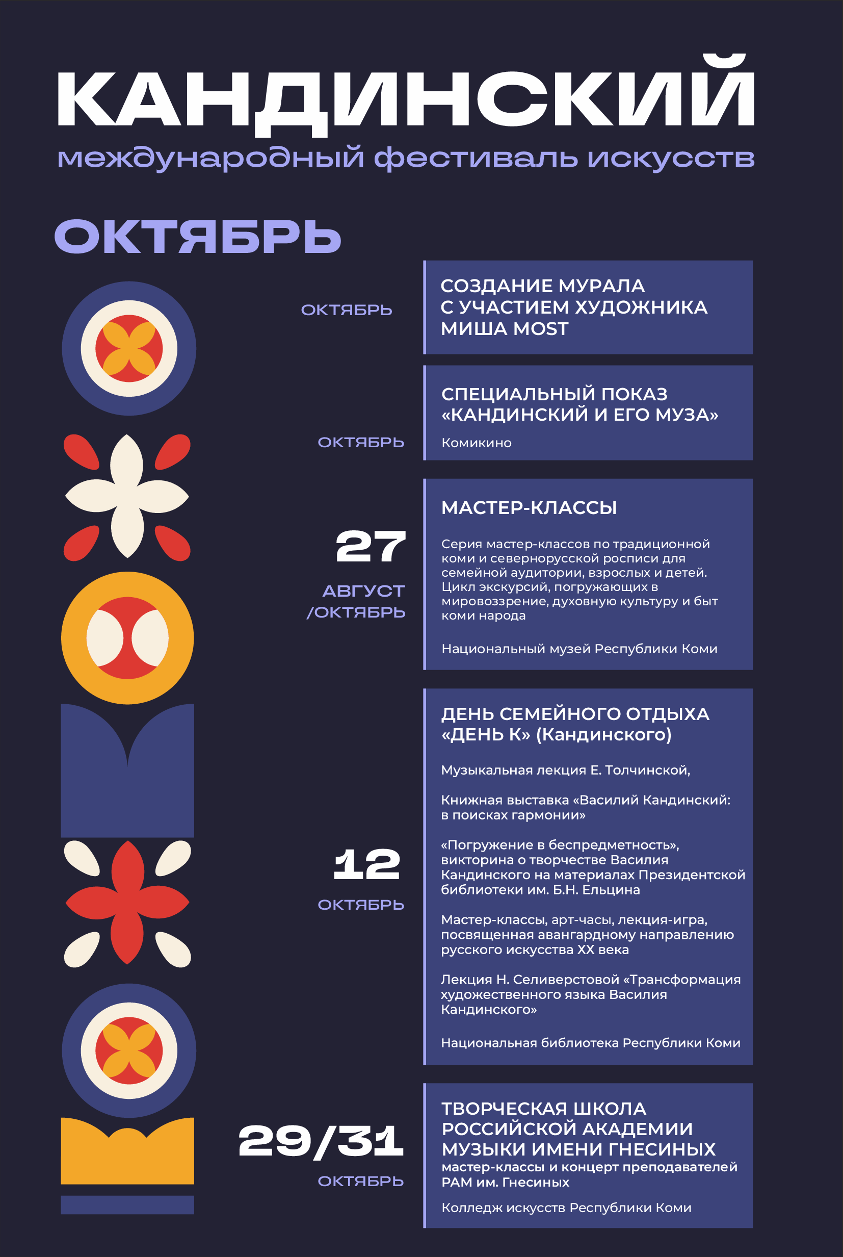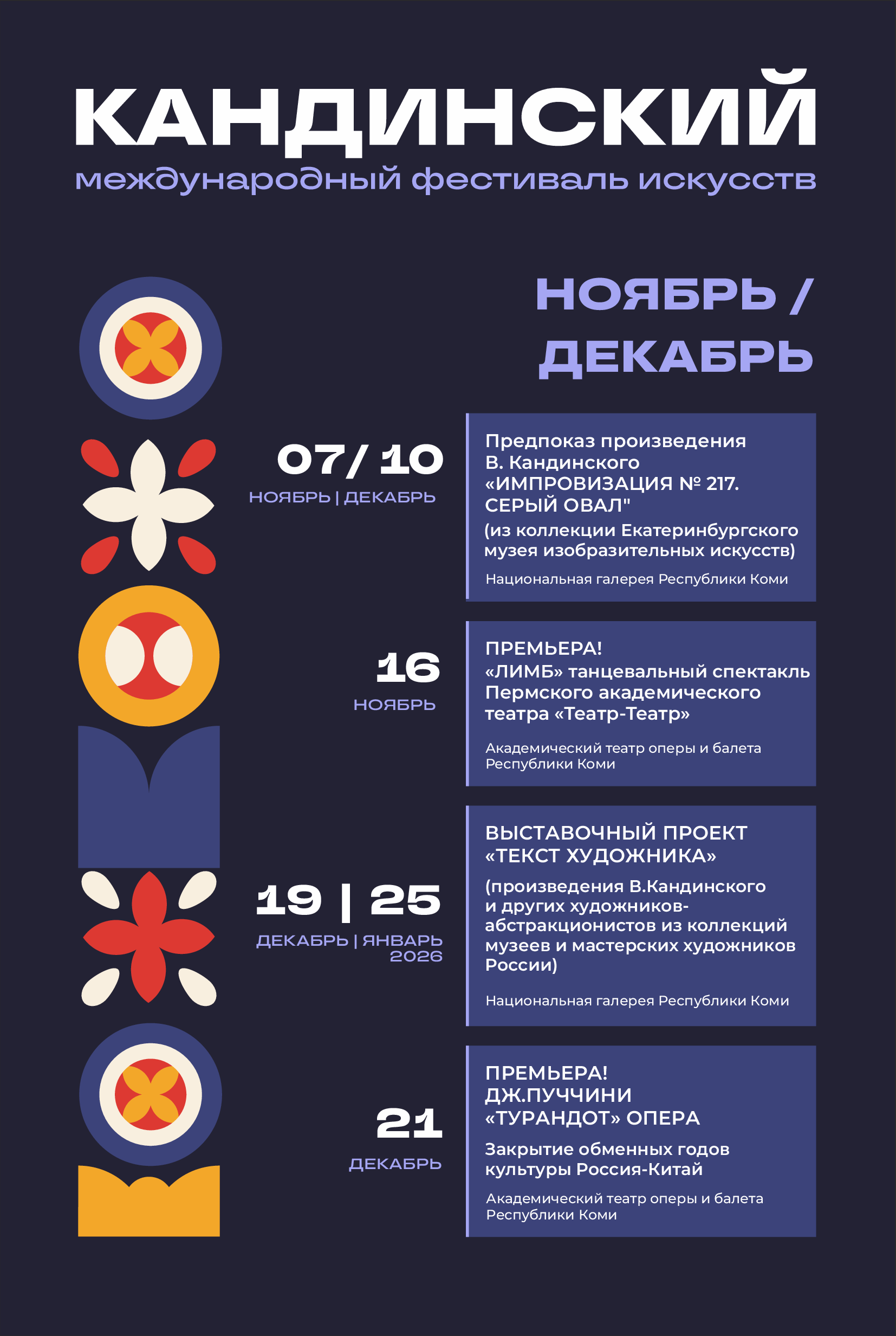В республике продолжается фестиваль "Кандинский". Медиацентр Минкультуры Коми предлагает афишу события.