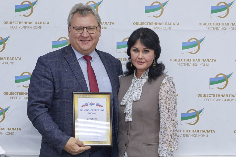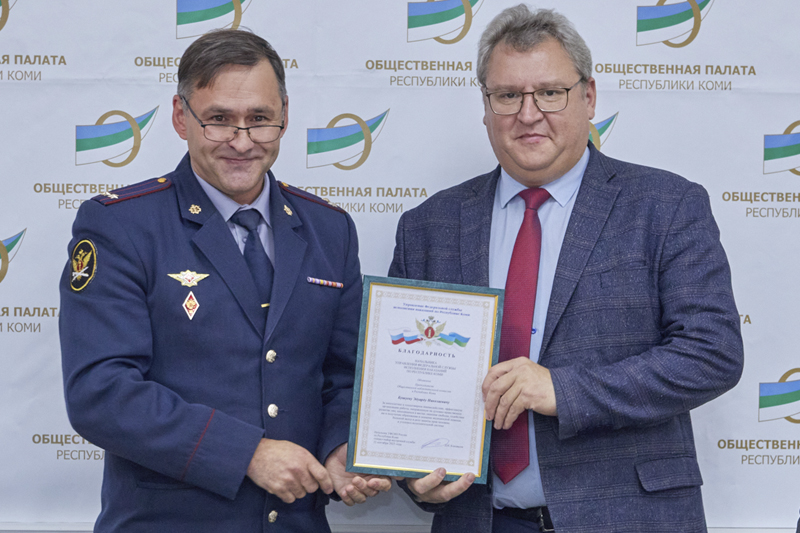 Работа прежнего состава комиссии высоко оценена не только на уровне региона, но и Российской Федерации. Перед вручением мандатов начальник Управления по государственной внутренней политике и взаимодействию с институтами гражданского общества Захар Волокитин вручил Эдуарду Бушуеву Почетную грамоту от Главы Республики Коми Ростислава Гольдштейна, Благодарственное письмо за плодотворную работу вручила Уполномоченный по правам человека Республики Коми Вера Железцова, благодарность от начальника Управления Федеральной службы исполнения наказаний по Республике Коми Дмитрия Коновалова передал Эдуарду Бушуеву помощник начальника УФСИН по соблюдению прав человека в УИС Алексей Гичев.