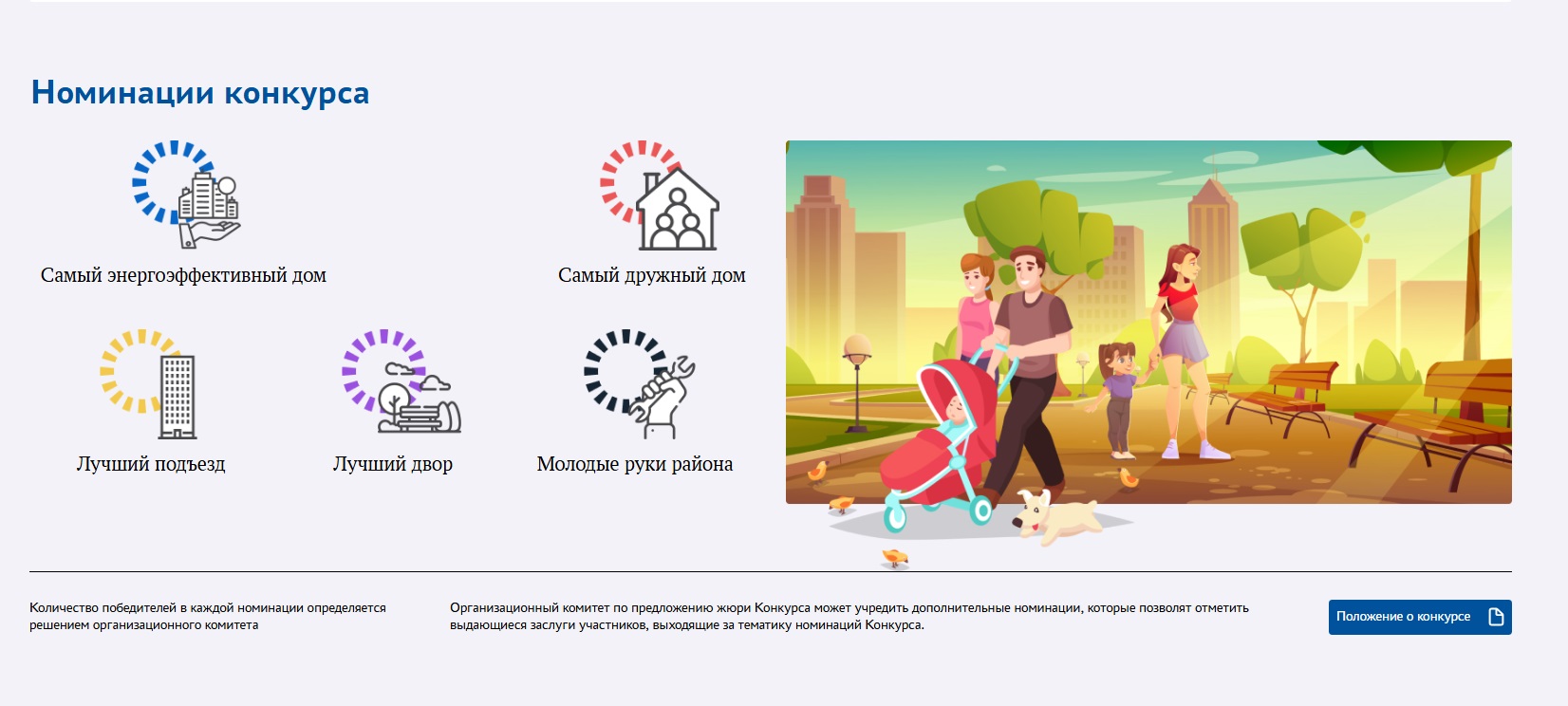 • Самый энергоэффективный дом (оценка мероприятий, позволяющих снизить платежи за коммунальные ресурсы, и активности жителей в реализации проектов по энергоэффективности).