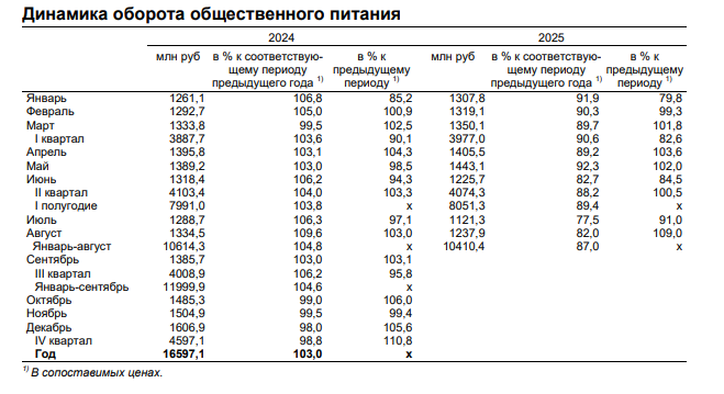 В августе 2025 года оборот предприятий общественного питания Республики Коми составил 1,2 миллиарда рублей, что на 18% меньше показателя августа 2024 года.