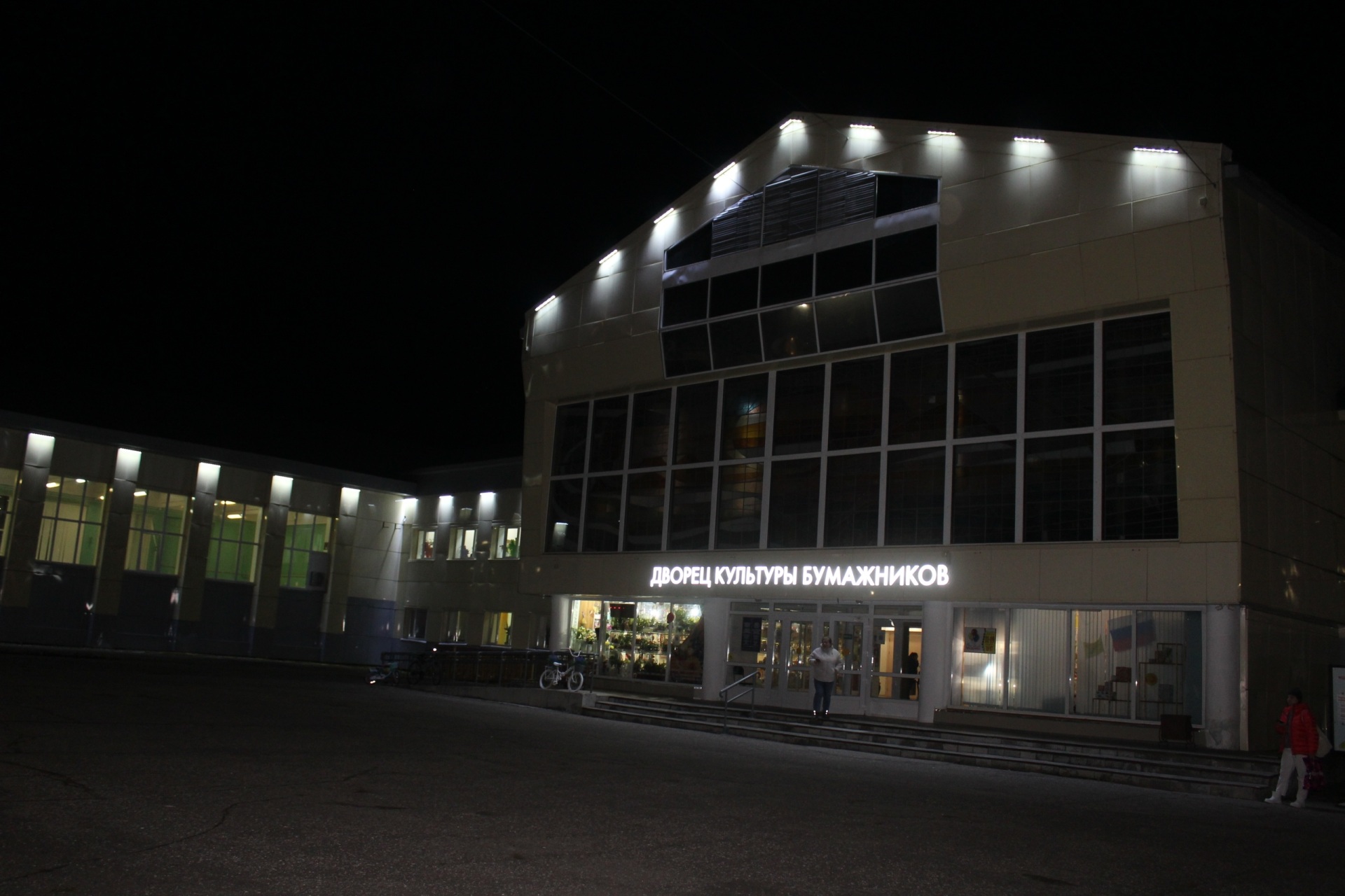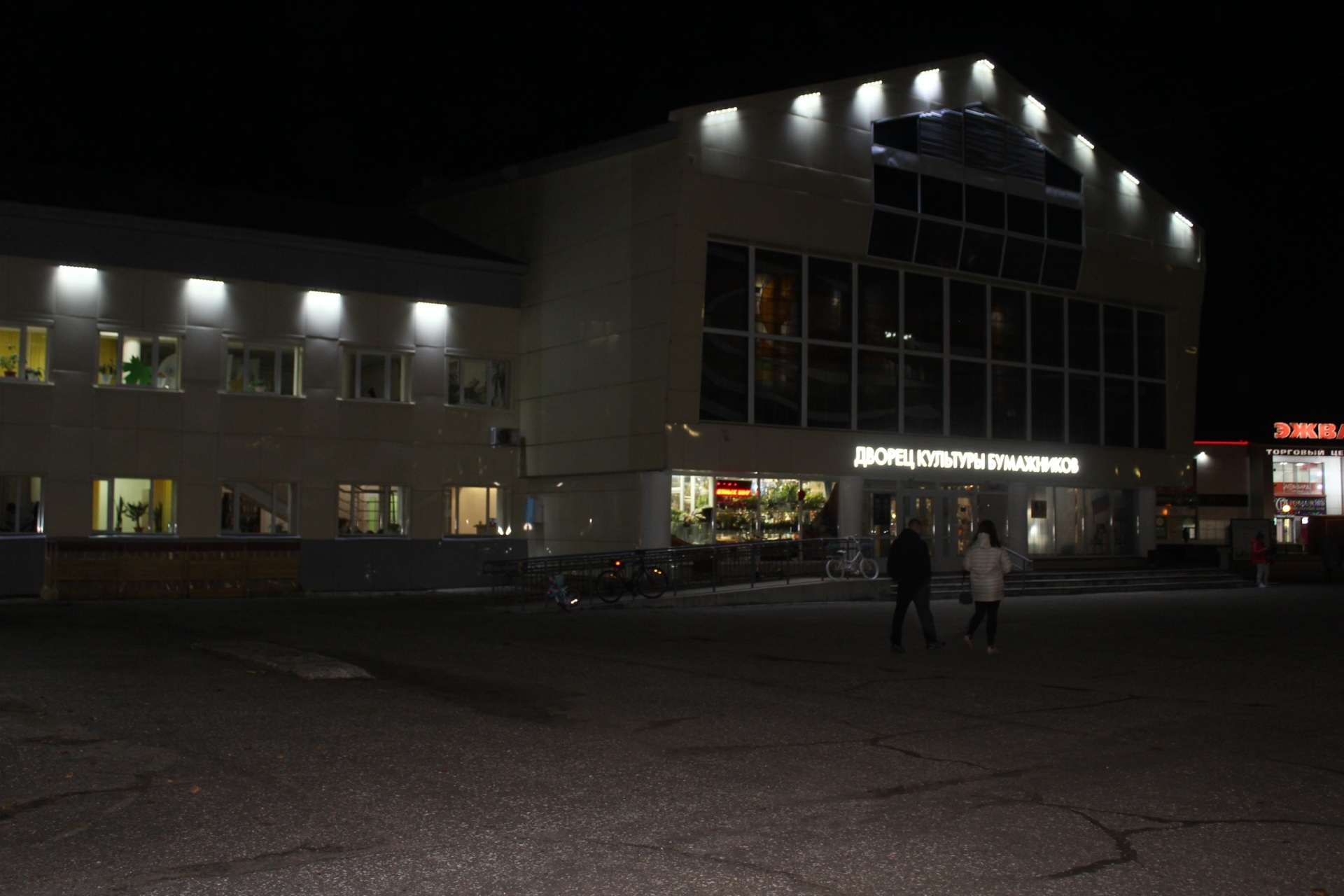 Уже в сентябре работы были завершены, и теперь Дворец культуры бумажников может считаться одним из новых узнаваемых объектов Эжвы. Свет подчеркивает архитектурные линии здания, а подсвеченная входная группа помогает горожанам сориентироваться в темное время суток.