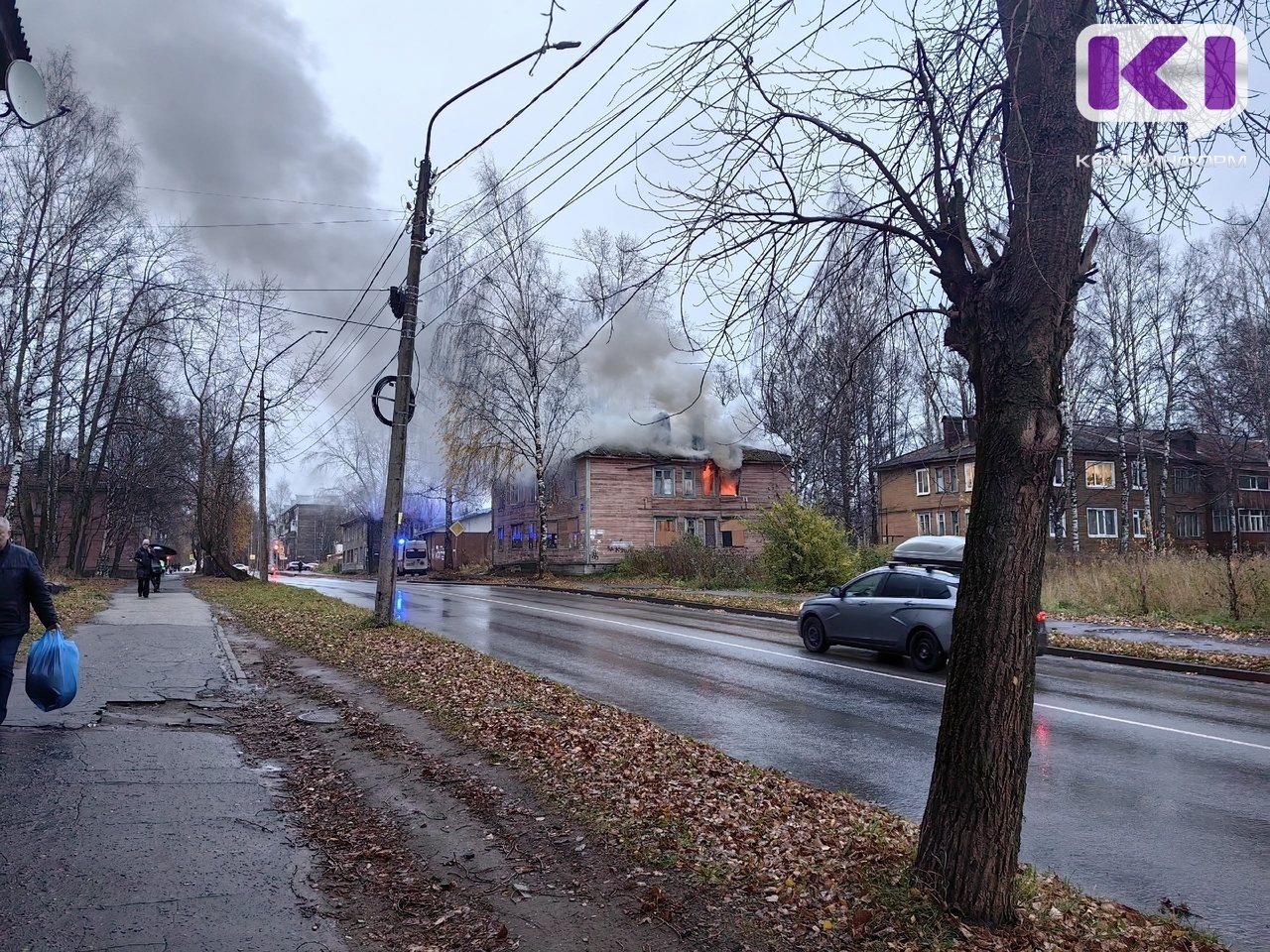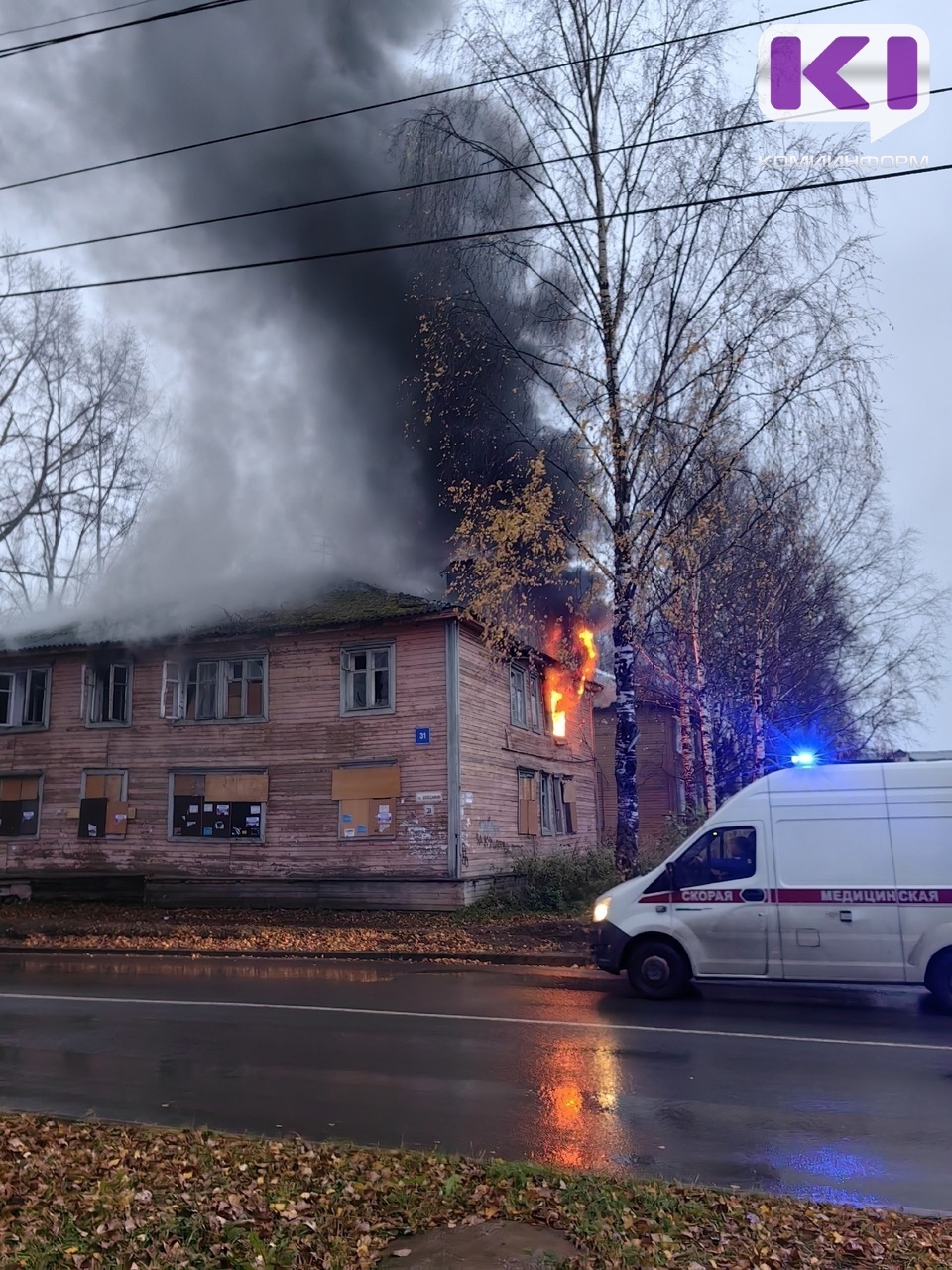В Сыктывкаре по ул.Оплеснина, 31 горит деревянный двухэтажный дом.