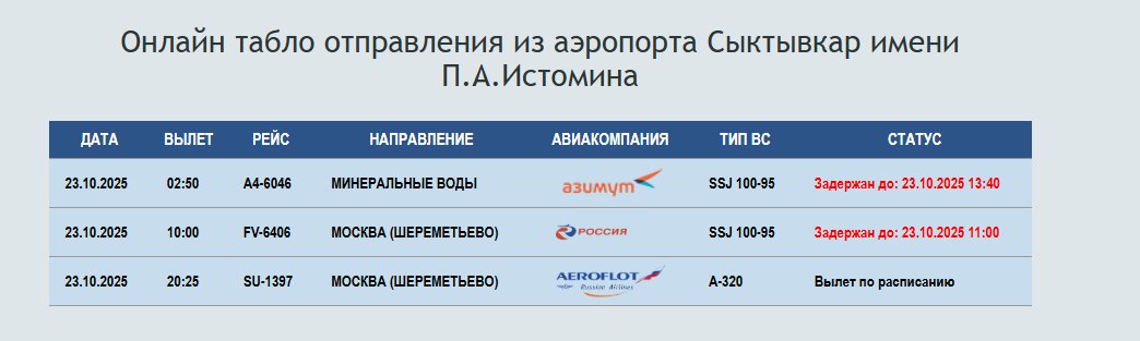 При этом рейсы из Москвы прибывают в Сыктывкар по расписанию. Так, воздушное судно, прибывшее из московского аэропорта Шереметьево, успешно приземлилось в сыктывкарском аэропорту в 10:11.