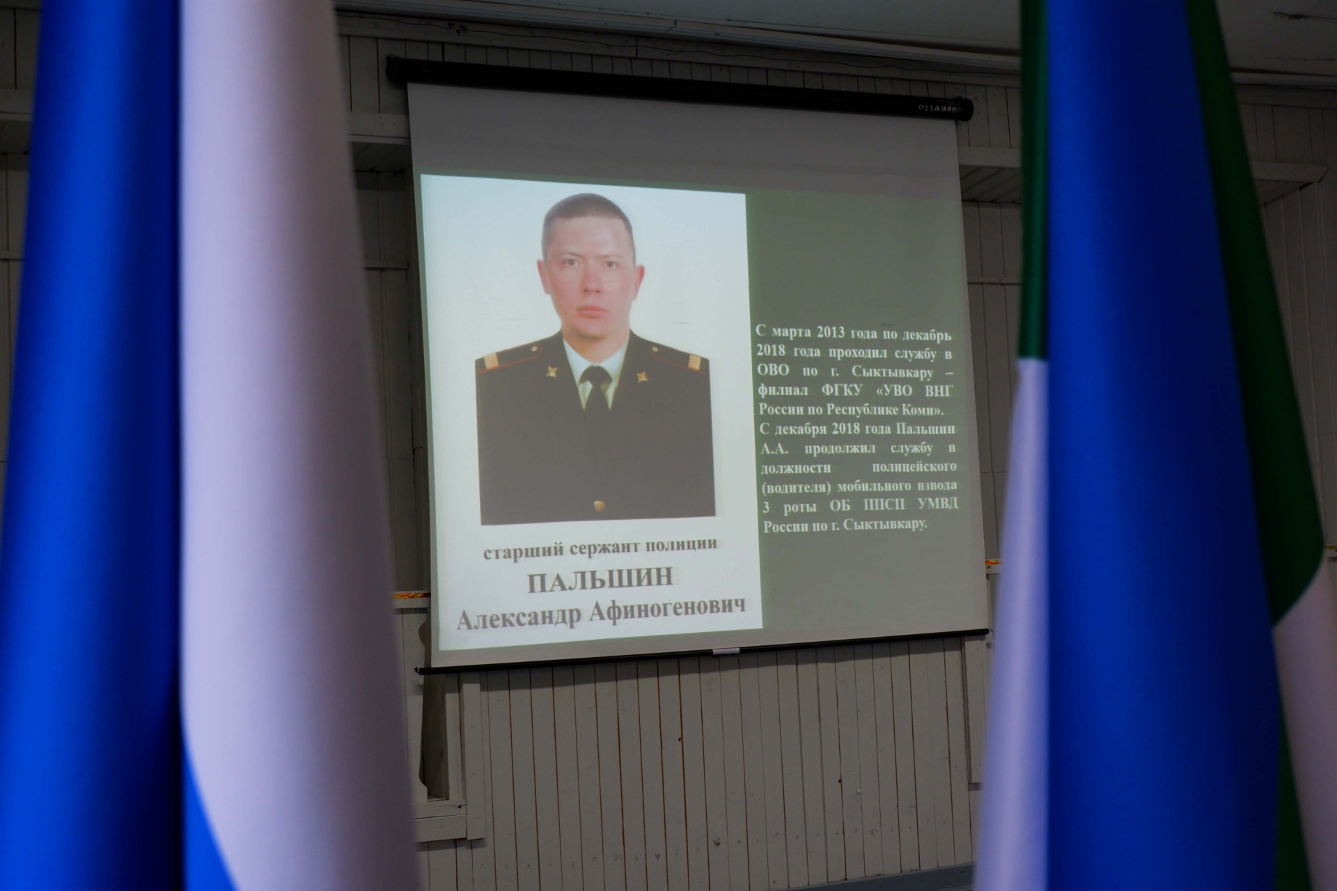 Указом Президента Российской Федерации от 07.07.2021 №407 старший сержант полиции Пальшин Александр Афиногенович, полицейский (водитель) мобильного взвода роты отдельного батальона ППСП УМВД России по г. Сыктывкару, награжден орденом Мужества (посмертно).