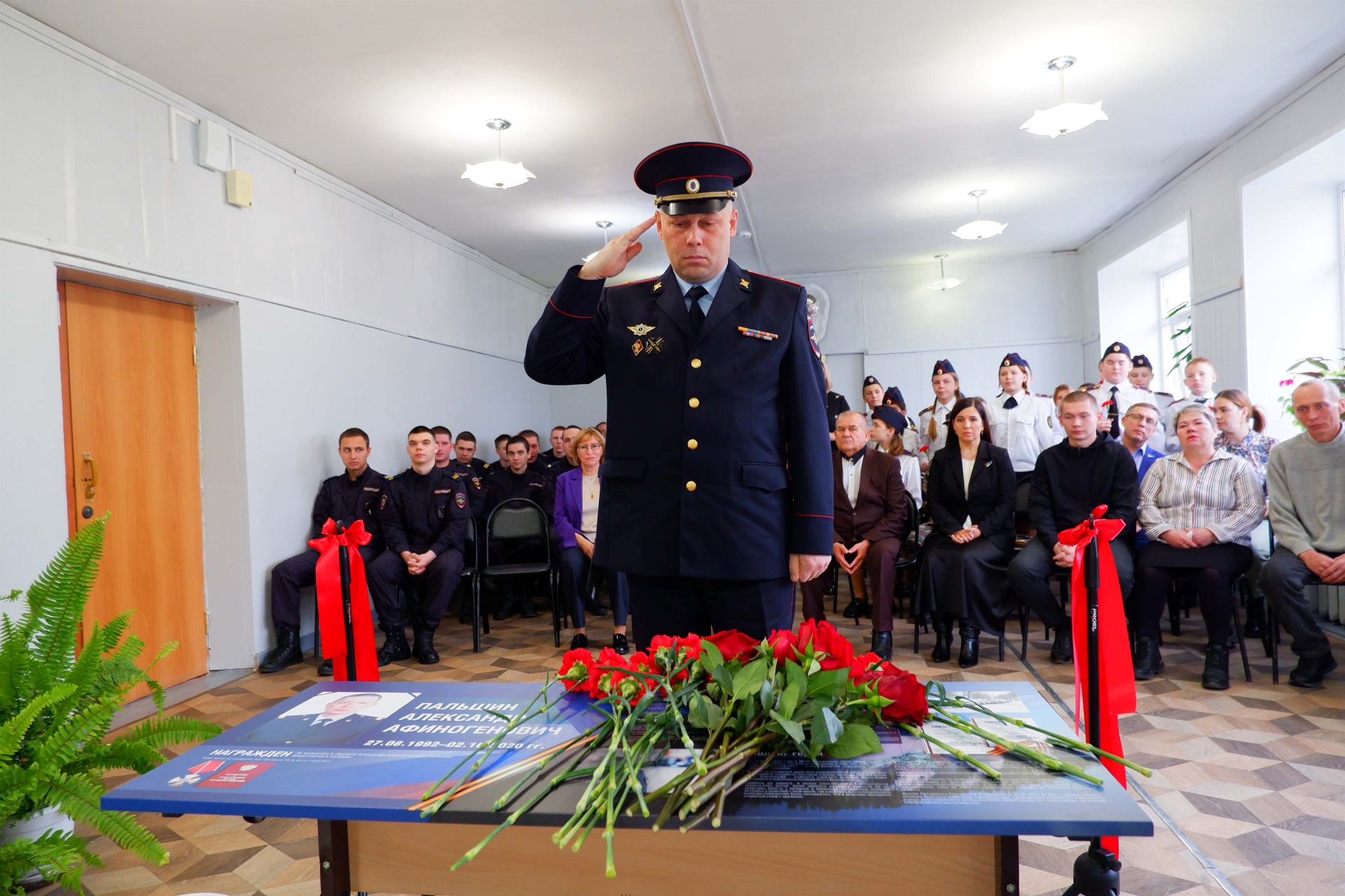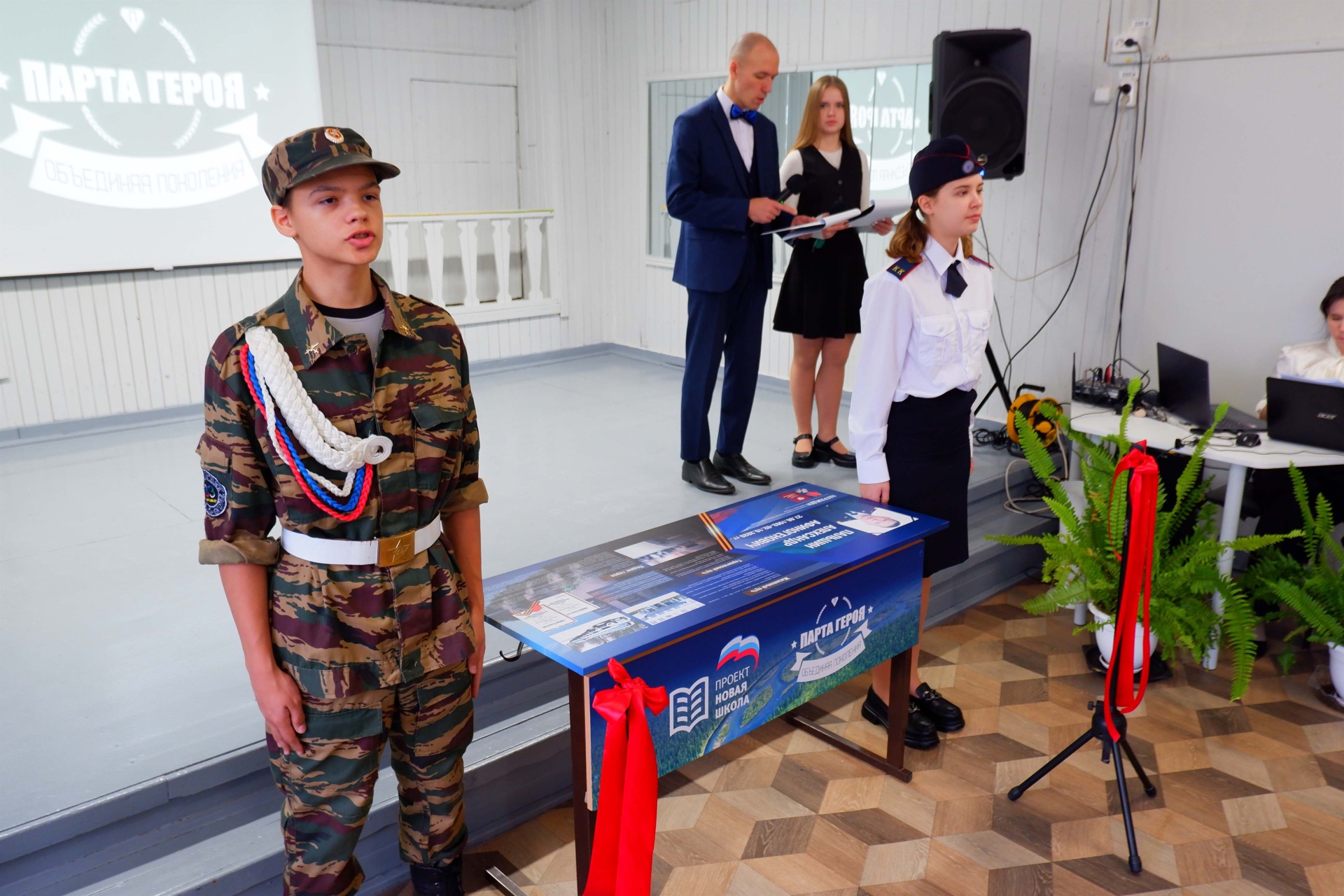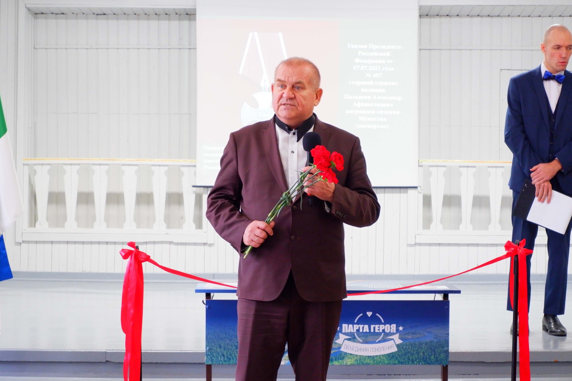 В рамках федеральных партпроектов "Историческая память" и "Новая школа" в 33-й школе при поддержке "Единой России" открыли "Парту Героя" памяти выпускника и сотрудника ОВД, погибшего при исполнении служебных обязанностей – Александра Афиногеновича Пальшина.