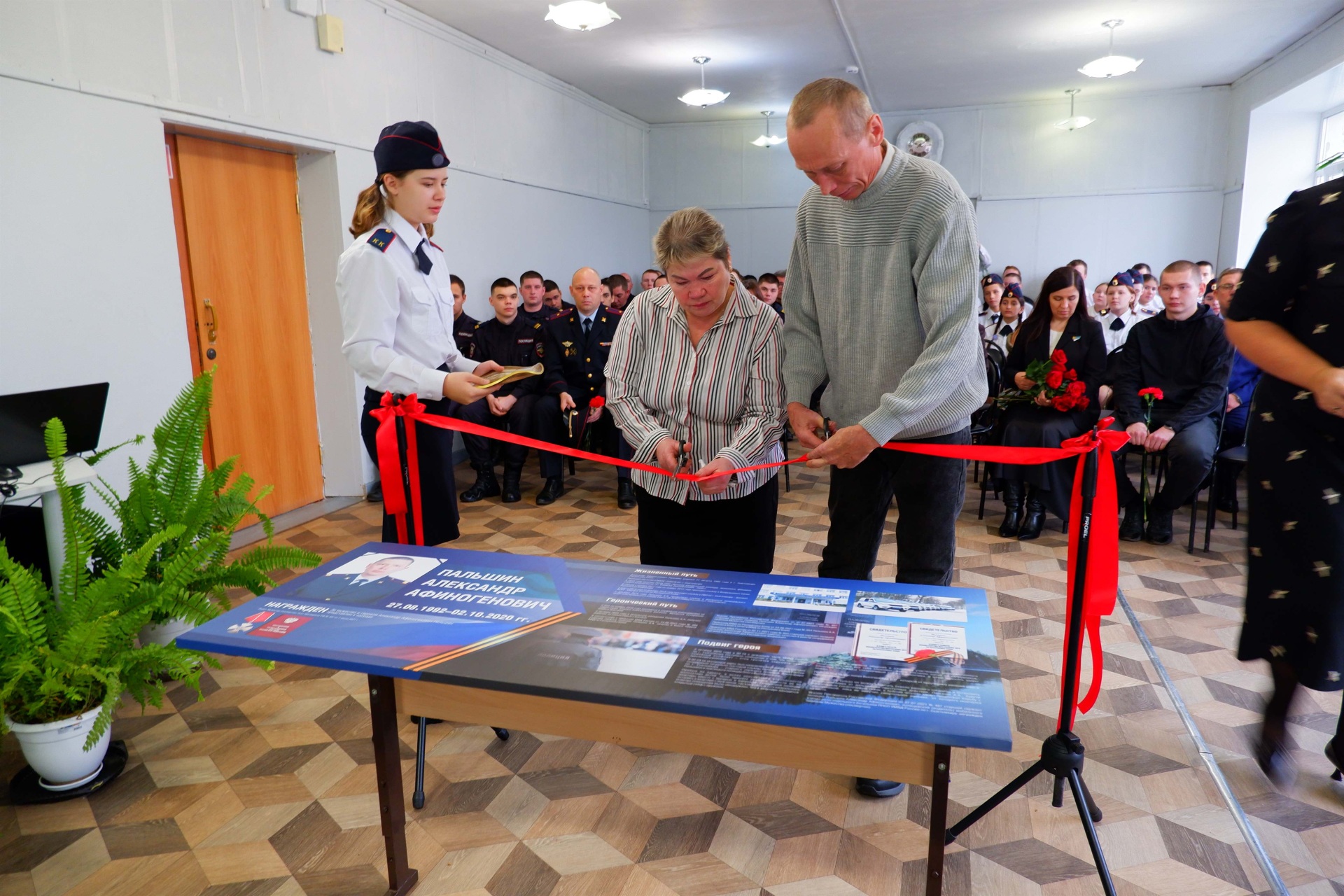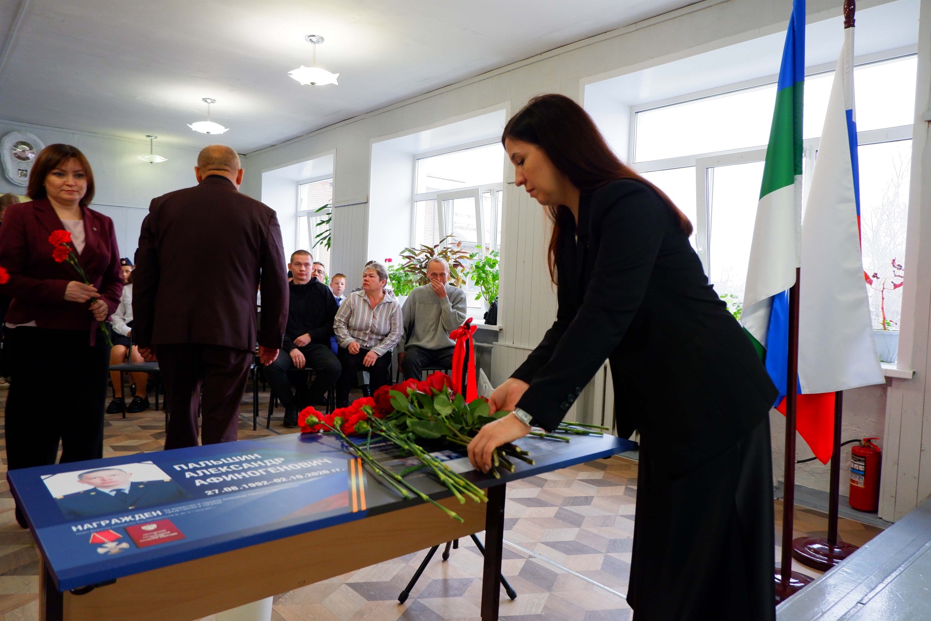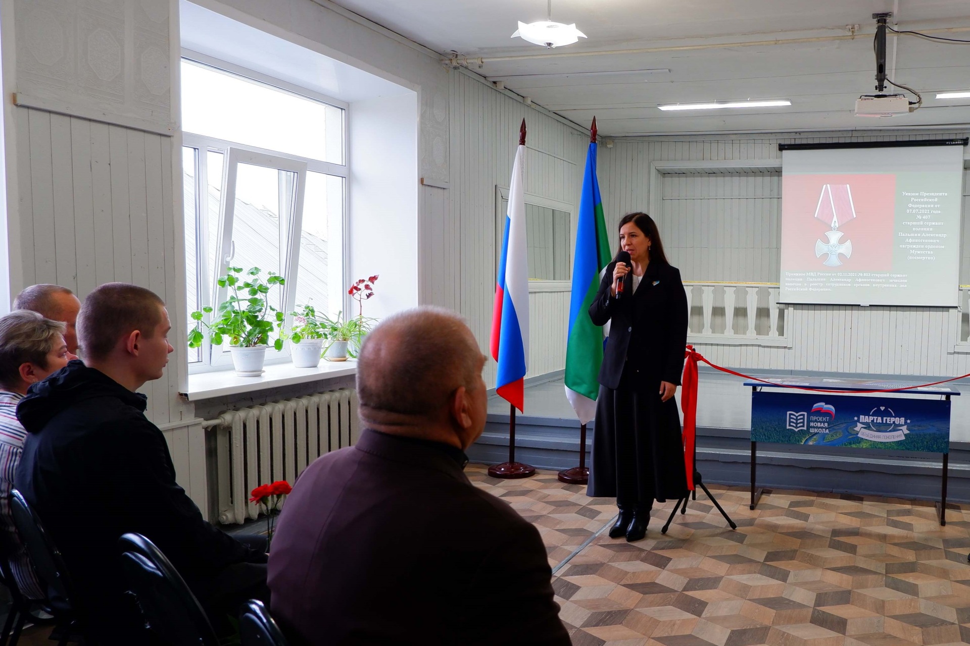 В рамках федеральных партпроектов "Историческая память" и "Новая школа" в 33-й школе при поддержке "Единой России" открыли "Парту Героя" памяти выпускника и сотрудника ОВД, погибшего при исполнении служебных обязанностей – Александра Афиногеновича Пальшина.