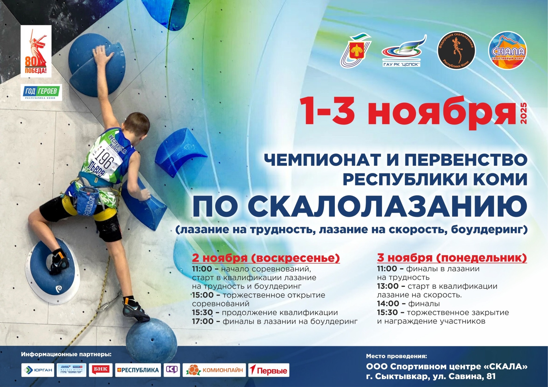 С 1 по 3 ноября пройдут чемпионат и первенство Республики Коми по скалолазанию (лазание на трудность, лазание на скорость, боулдеринг).