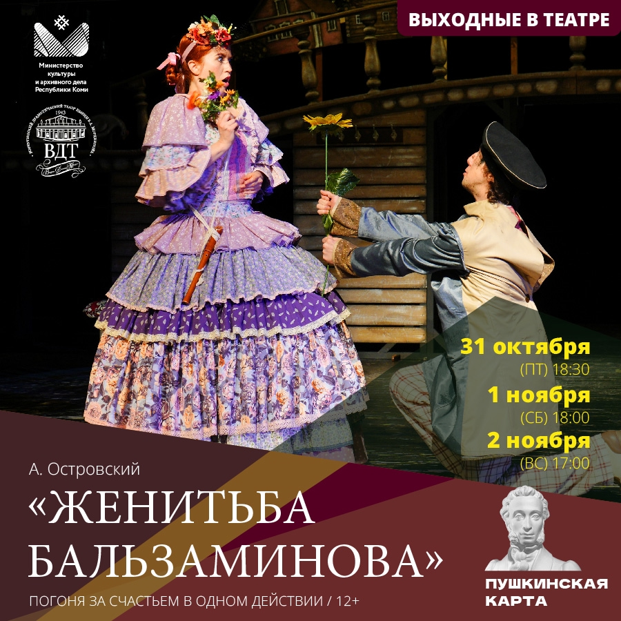 Воркутинский драматический театр им. Б.А. Мордвинова приглашает на постановку "Женитьба Бальзаминова" (12+).